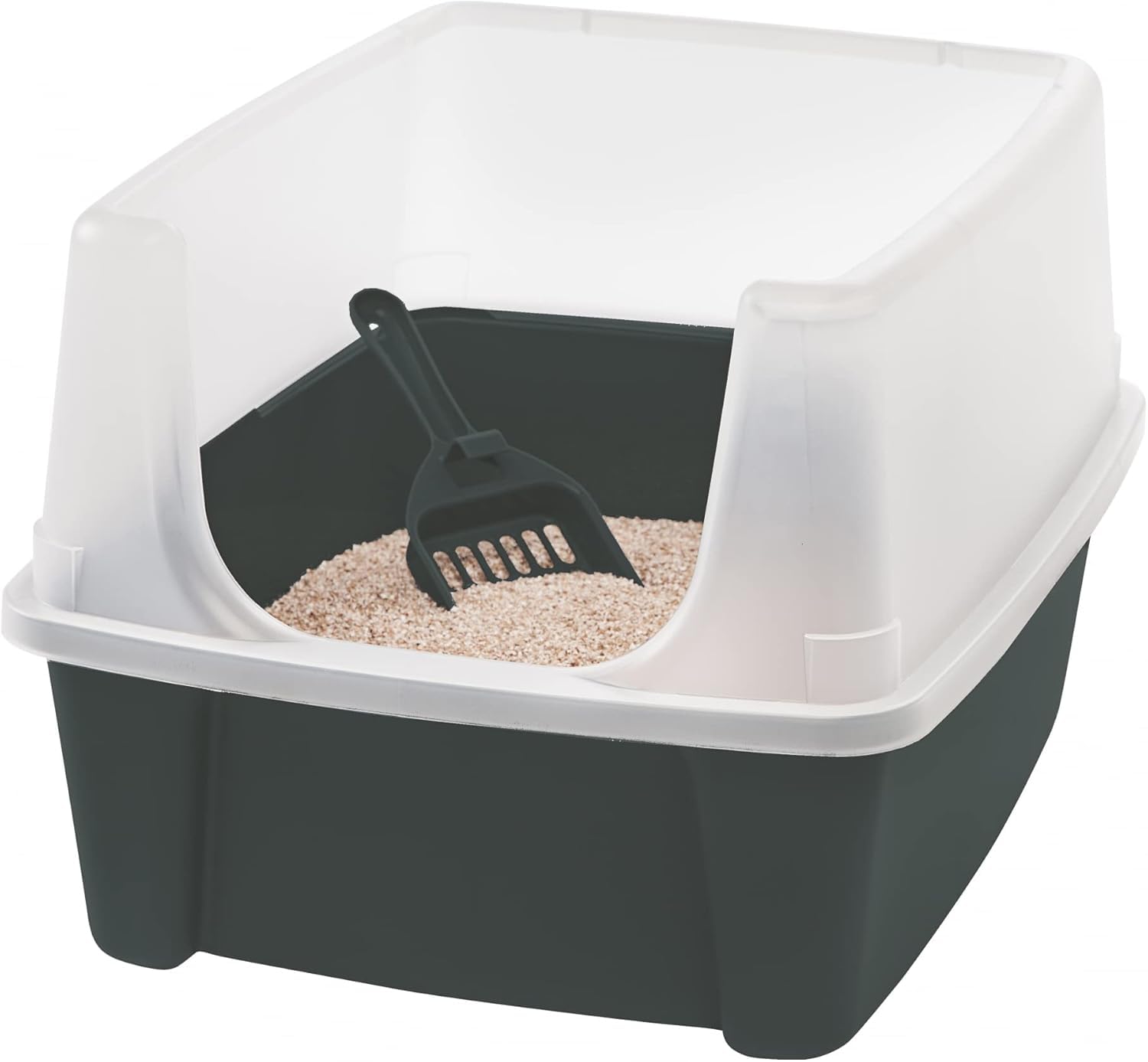 Product DescriptionThe Cat Litter Box by Iris Ohyama has a raised rim, limiting litter spills outside the litter box and retaining odors so they do not spread inside your home. This roofless litter box provides quick and easy access, while its height gives your cat a private space. The polished interior surfaces and the included litter scoop make the litter box easy to clean. The recessed bottom and molded feet hold the cat litter in place and the molded edges around the litter box add strength and stability. The cat litter box comes with a matching litter scoop for easy cleaning, and the scoop is designed to fit anywhere in the litter box.Box Contains1x Cat Litter Box