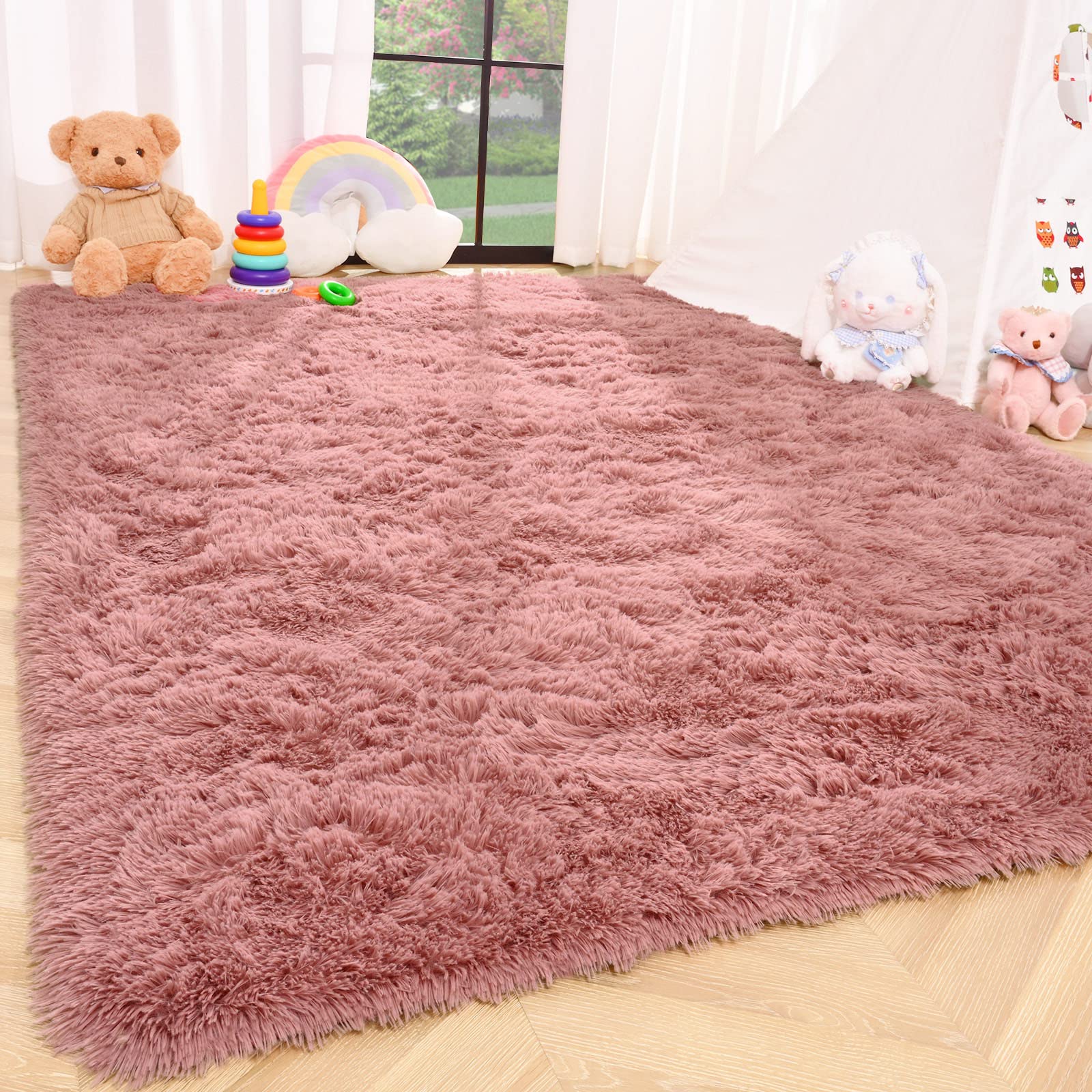 ISEAU Fluffy Rug Carpets Soft Shaggy Area Rug Indoor Floor Rugs for Kids Room Fuzzy Carpet Comfy Cute Nursery Rug Bedside Rug for Boys Girls Bedroom Living Room Home Decor, 3ft x 5ft,Blush