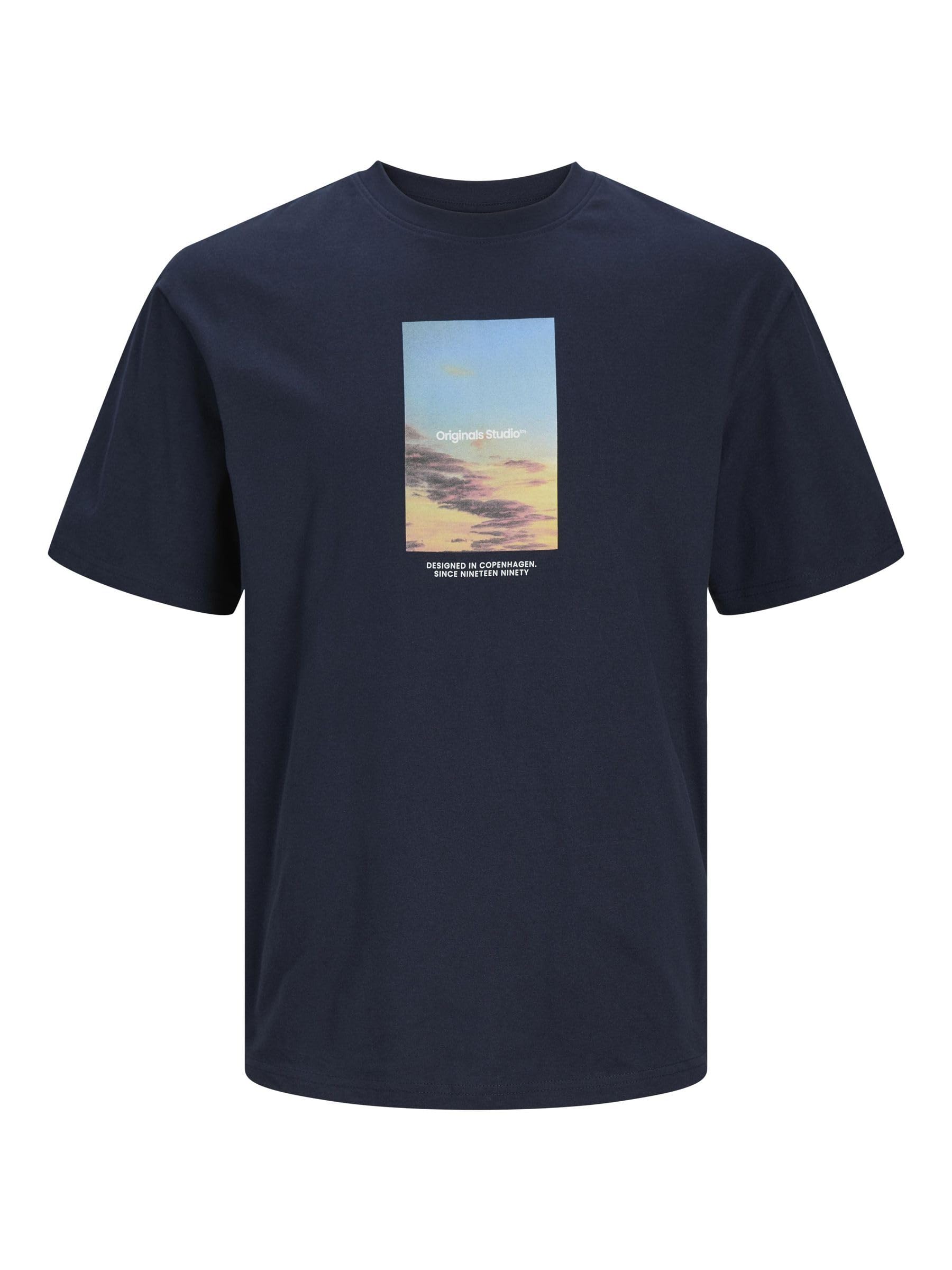 JACK & JONES Men's Jorvesterbro Picture Tee Ss Crew Neck Ln T-Shirt, Blue, M