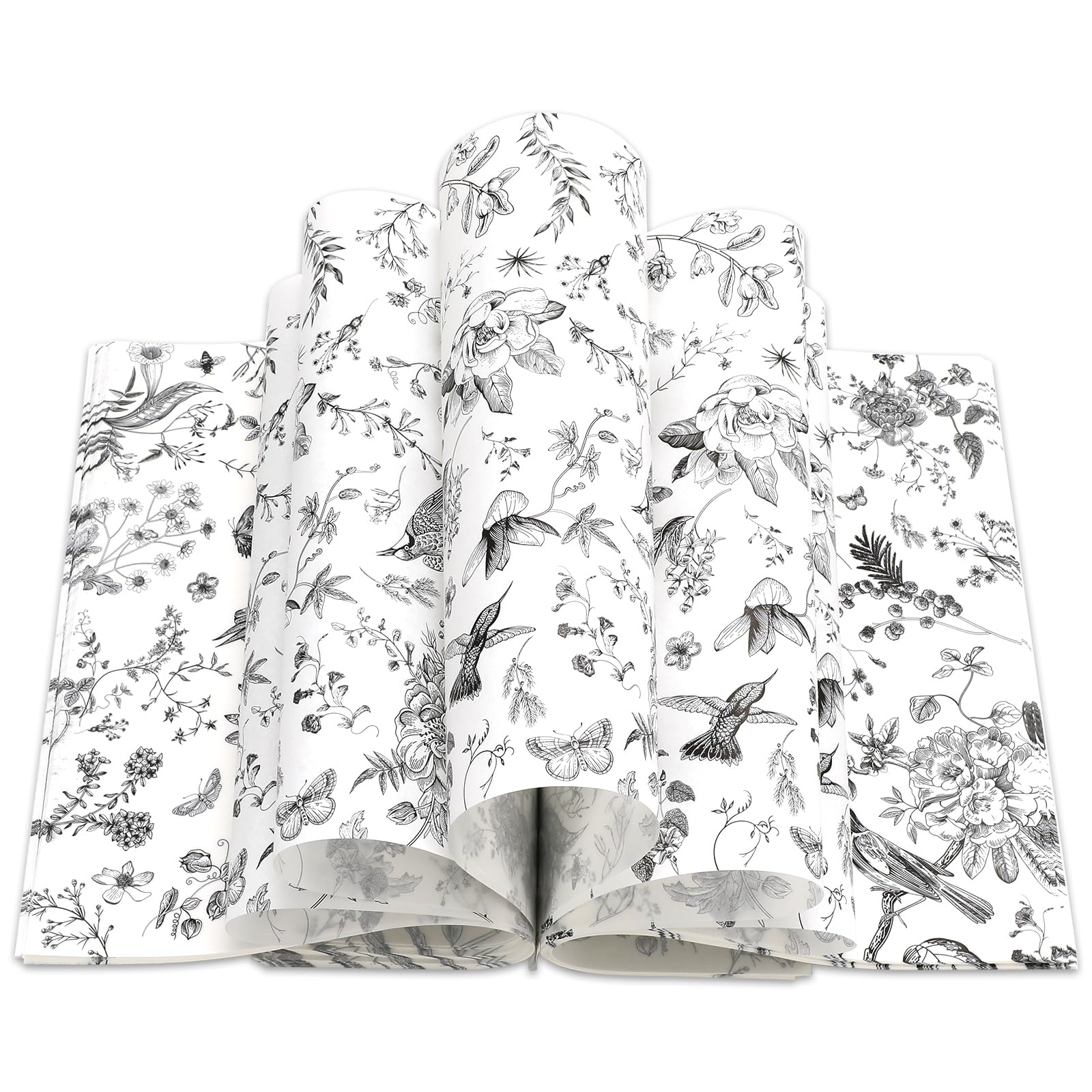 JarThenaAMCS 150Pcs Black Floral Wax Paper Bird Flower Deli Paper Sandwich Wrap Paper Tissue Oil-Proof Picnic Liners for Party Kitchen Supplies, 9.8 x 8.3 Inch