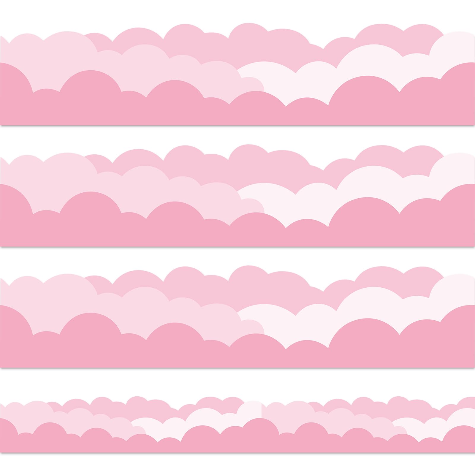 JarThenaAMCS 32.8Ft Pink Sky Clouds Bulletin Board Border Clouds Shape Die Cut Trim Border Roll for Classroom Office Chalkboard Decoration