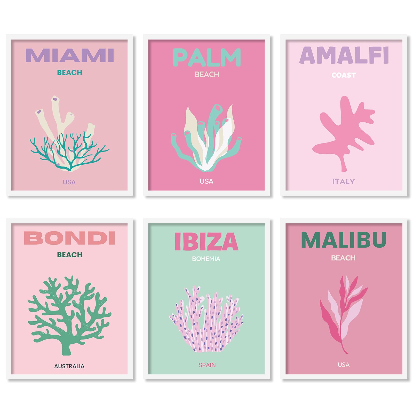 JarThenaAMCS 6Pcs Pink Preppy Travel Wall Art Prints Abstract Aesthetic Preppy Room Decor Minimalist Art Poster Decor for Bedroom Pink College Dorm Room Posters(UNFRAMED), 8 x10in