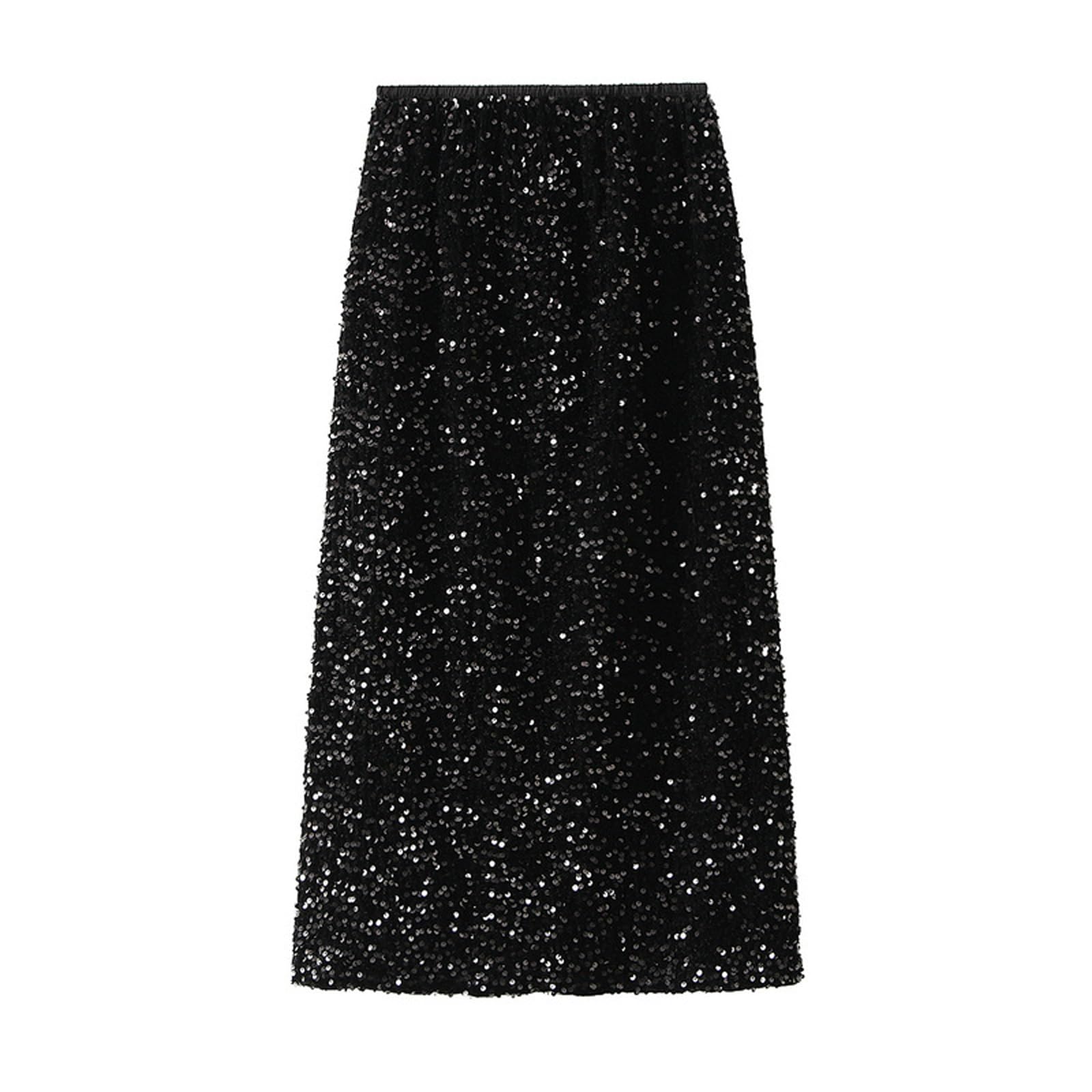 Jemsia Midi Skirt Sequins Skirt with Back Slit,Stretchy High Waist Long Skirt Glitter Pencil Skirt for Night Out Party Homecoming Evening,Black