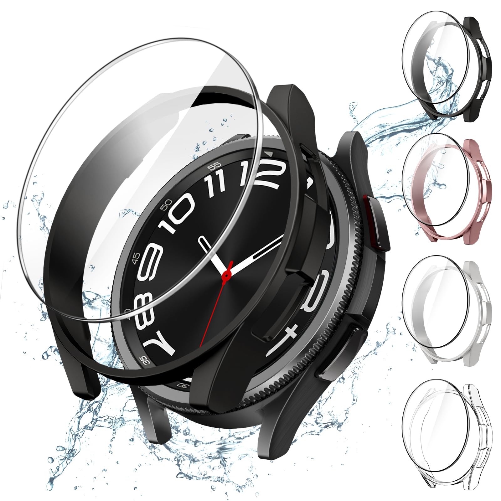 JETech 4+4 Pack Case and Screen Protector for Samsung Galaxy Watch 6 Classic 43mm, Tempered Glass Film Protective Hard PC Bumper Cover