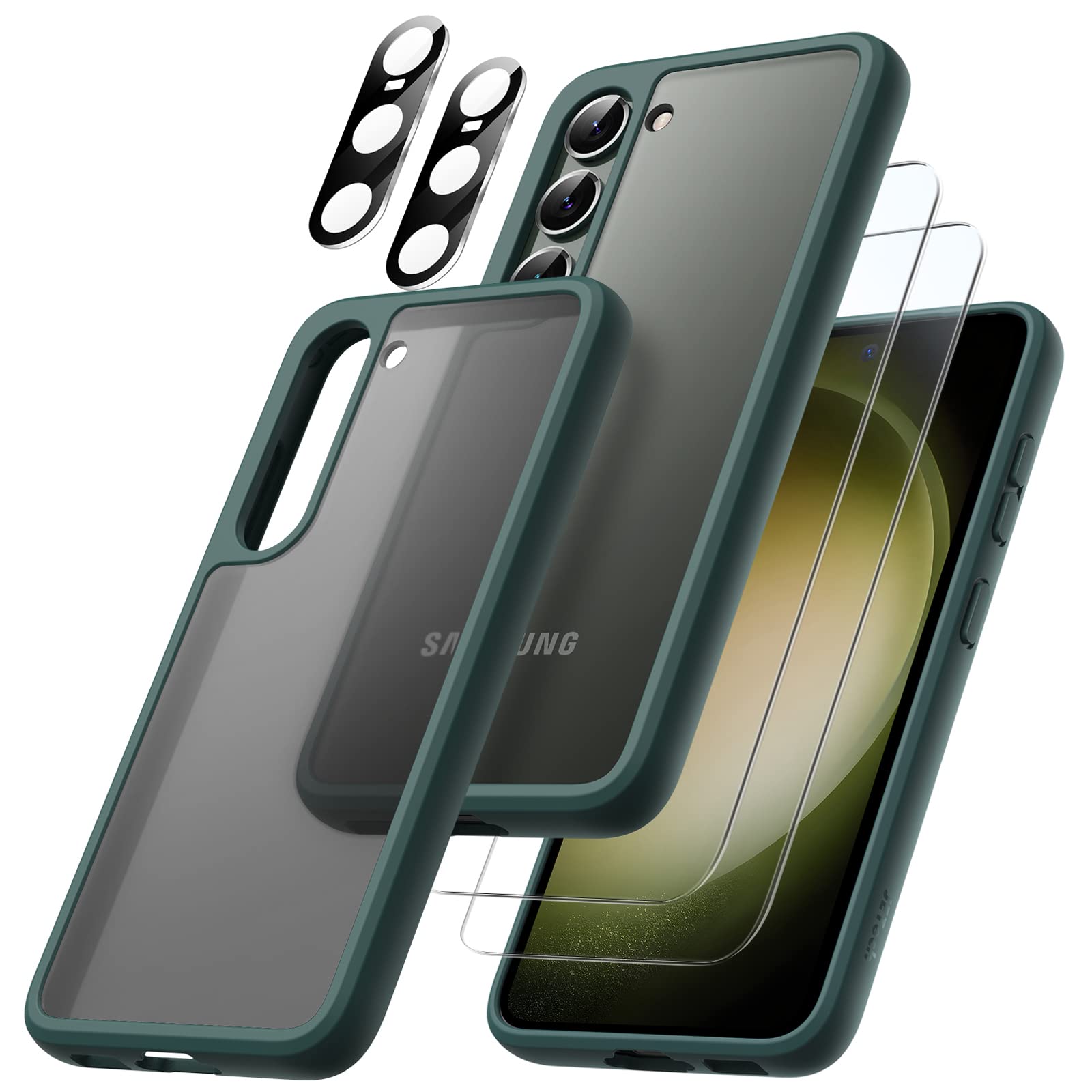 JETech [5 in 1] Matte Case for Samsung Galaxy S23+/ S23 Plus 6.6-Inch with 2 Screen Protector and 2 Camera Lens Protector, Translucent Back Protective Phone Cover, Tempered Glass Film