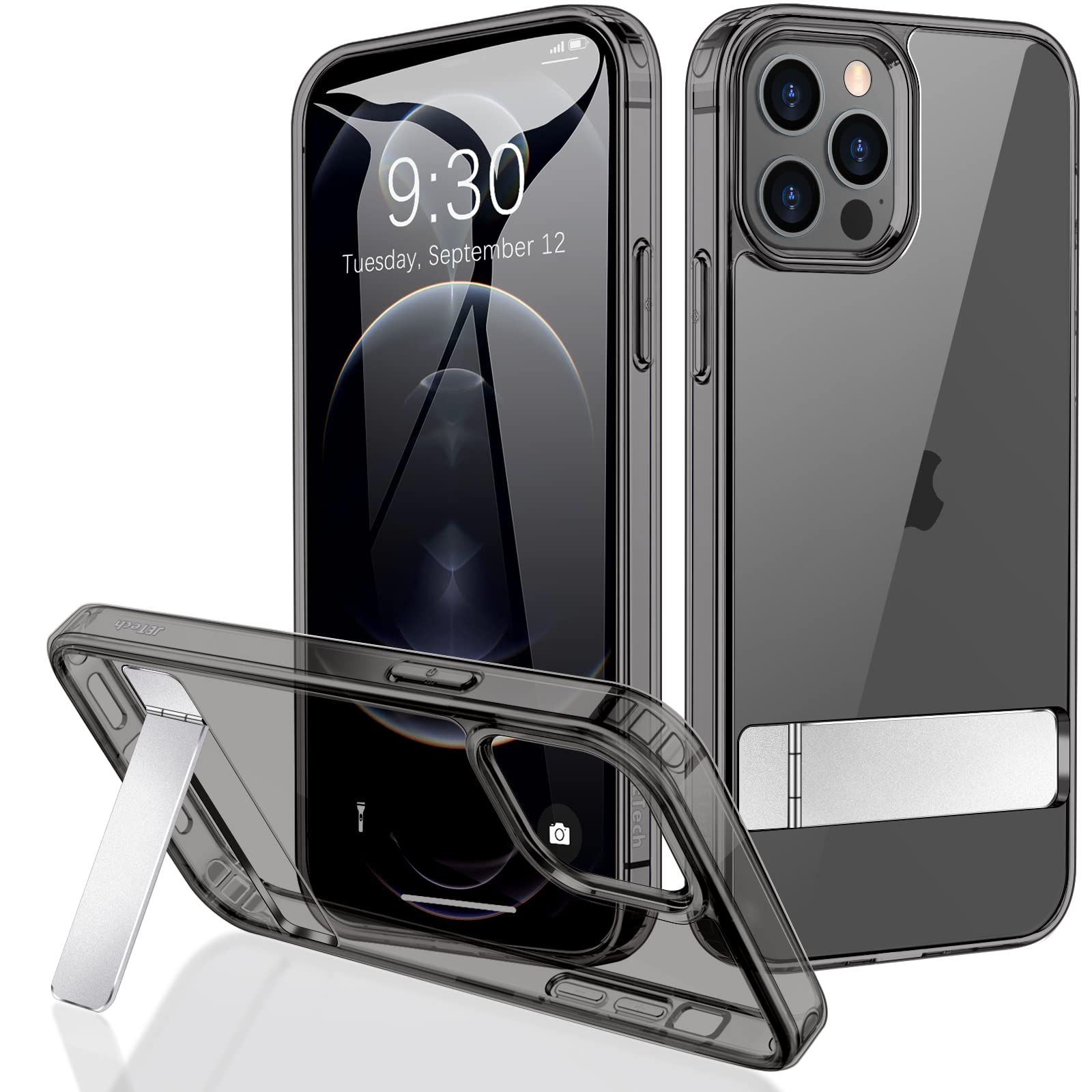 Jetech For iPhone 12 Pro Max 6.7 inch Case with Stand, Compatible with Wireless Charging, Slim Shockproof Phone Case, 3-Way Metal Kickstand (Black)