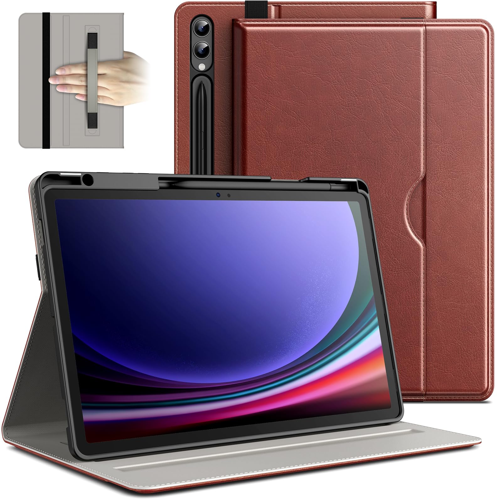 JETech Case for Samsung Galaxy Tab S10 Plus/Tab S9 Plus 12.4-Inch with S Pen Holder, PU Leather Business Folio Protective Tablet Cover with Pocket & Straps, Auto Wake/Sleep, Multi-Angle Viewing