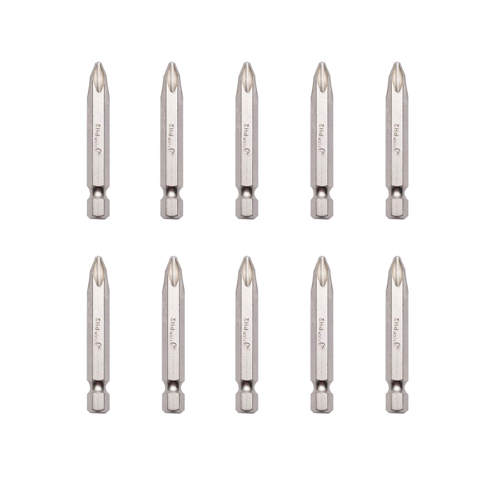 Jetech PH2 50mm Phillips Screwdriver Bits (10 Pack) - 2 inch Nickle Plated Heat Treated S2 Alloy Precision Bits with Case