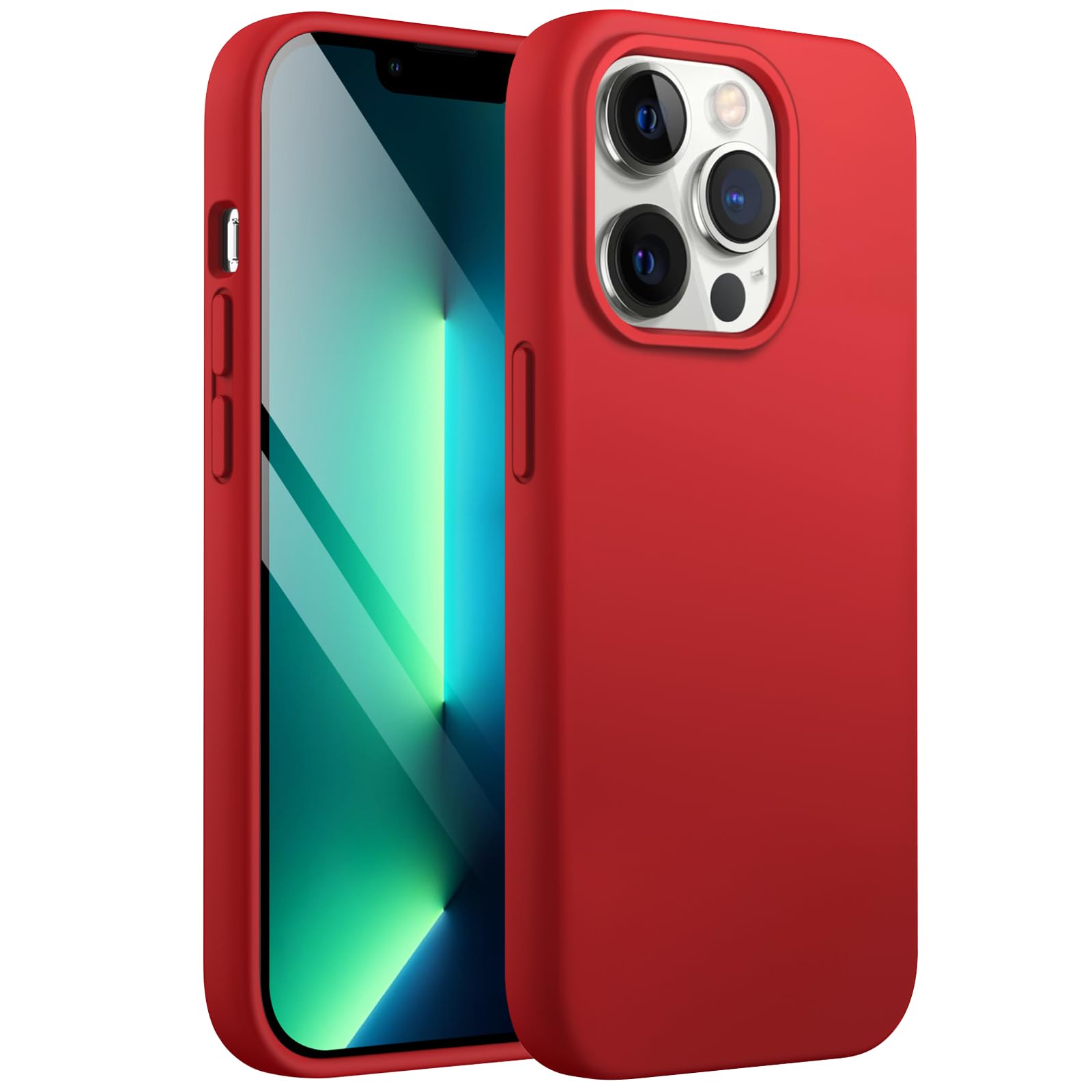 Jetech Silicone Case Compatible with iPhone 13 Pro Max 6.7 inch, Full Protection Cover with Silky Touch, Soft Microfiber Cloth Lining, Shockproof (Red)