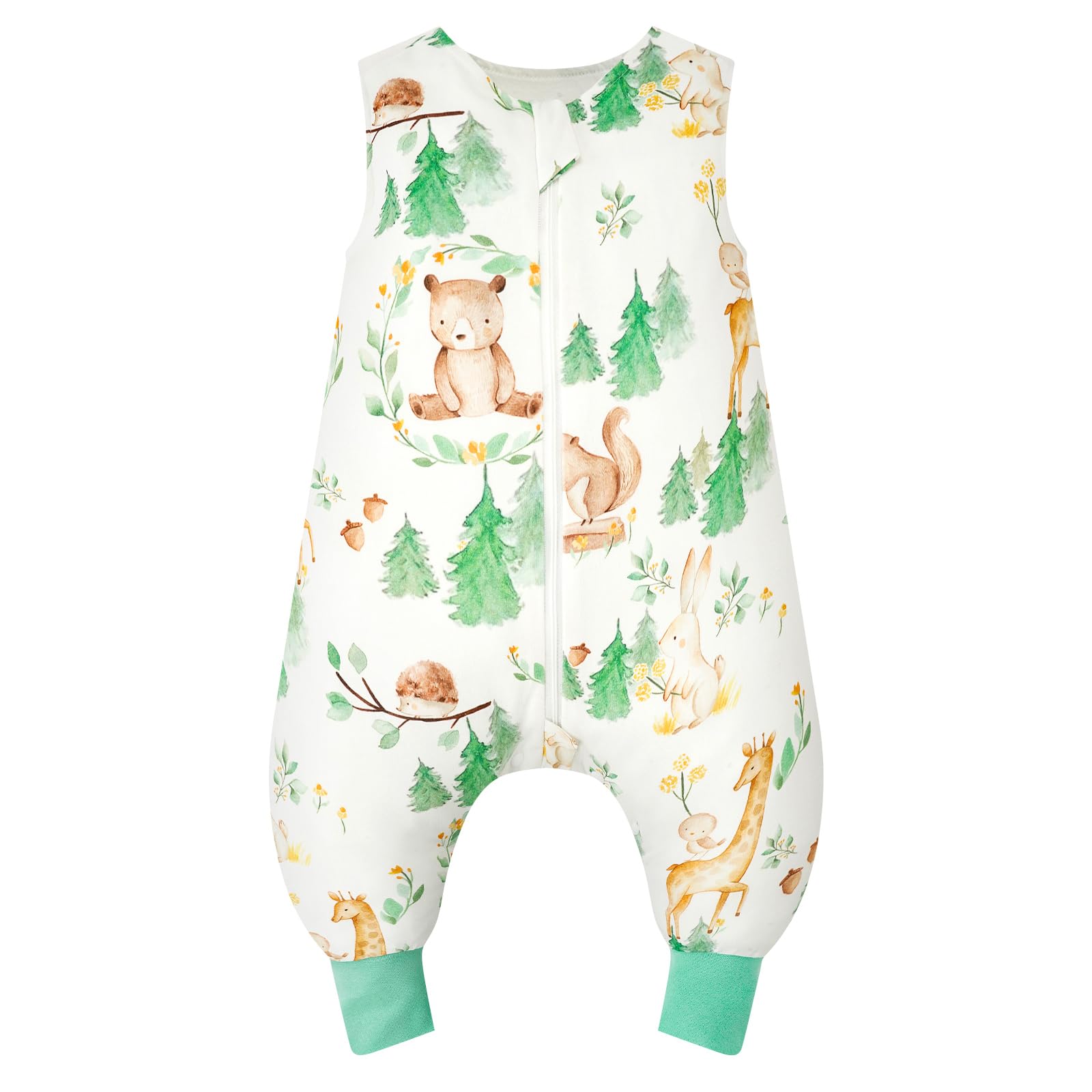 JiAmy Baby Sleeping Bag 1.0 Tog with Legs 100% Cotton Sleeveless Toddler Wearable Sleeping Bag with Feets Infants Sleep Sack for 2-3 Years Green Forests
