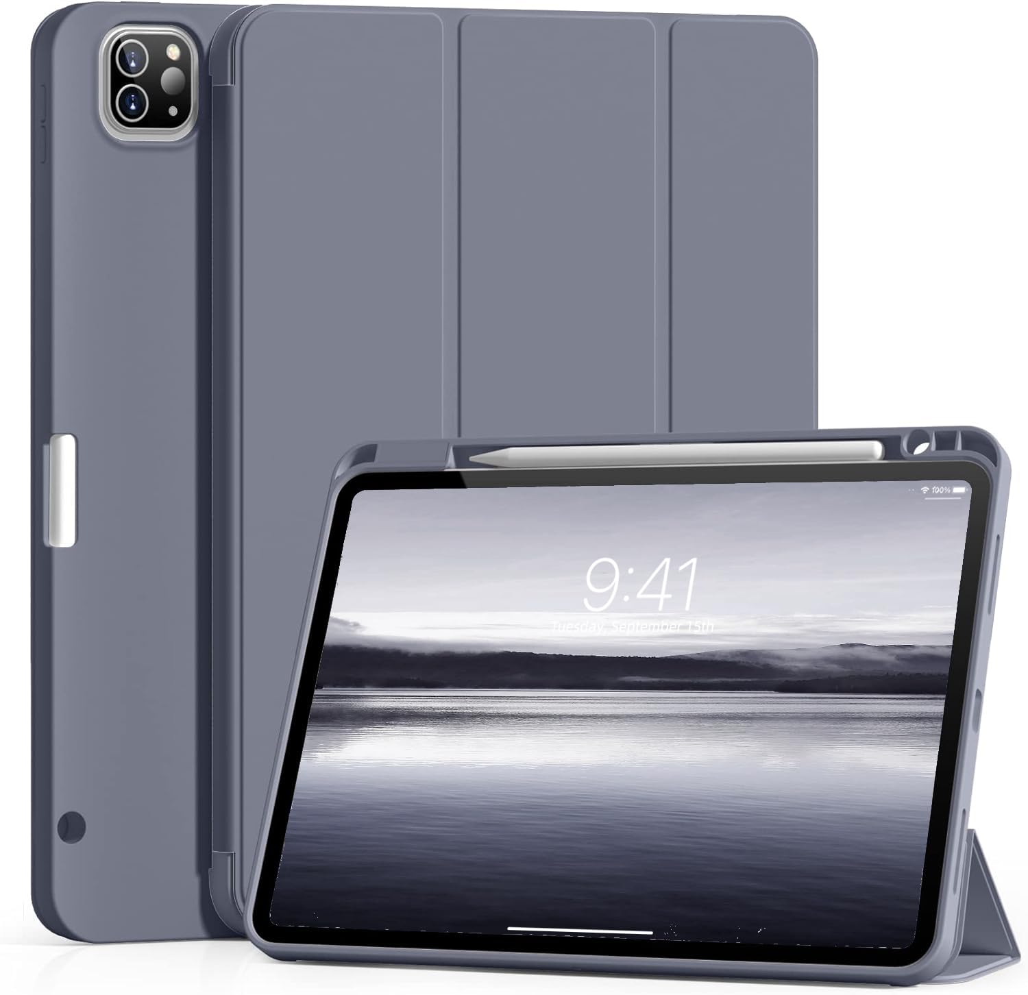JKSML Case for iPad Pro 12.9 Case 2022/2021/2020 (6th/5th/4th Gen) with Pencil Holder | 2nd Gen Pencil Charging | Auto Sleep/Wake | Flexible TPU Protective Cover (Grey Blue)
