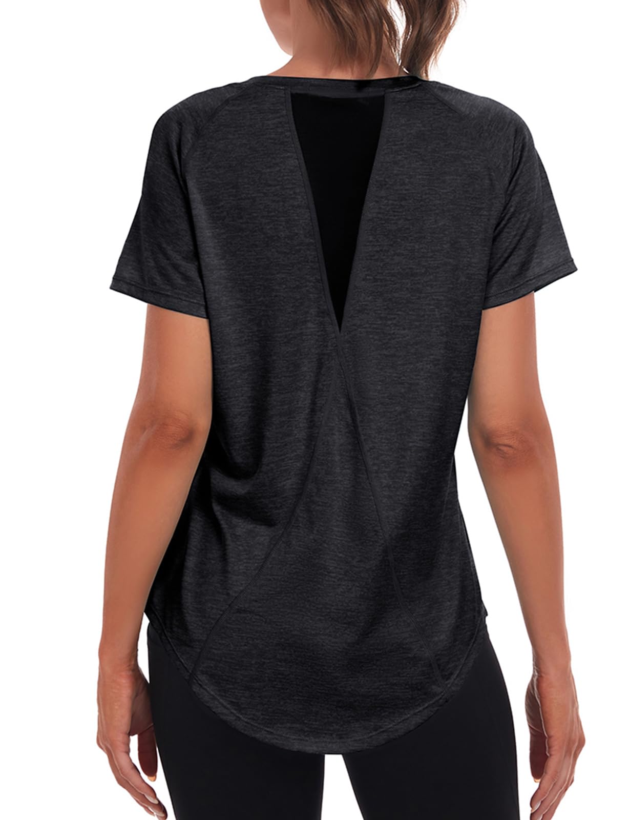 Jlowesun Women's Long Yoga Gym Tops, Sprots Running Exercise T-Shirt Short Sleeve Back Mesh Workout Loose Fit Summer Quick Dry Fitness Activewear Athletic Tee for Ladies