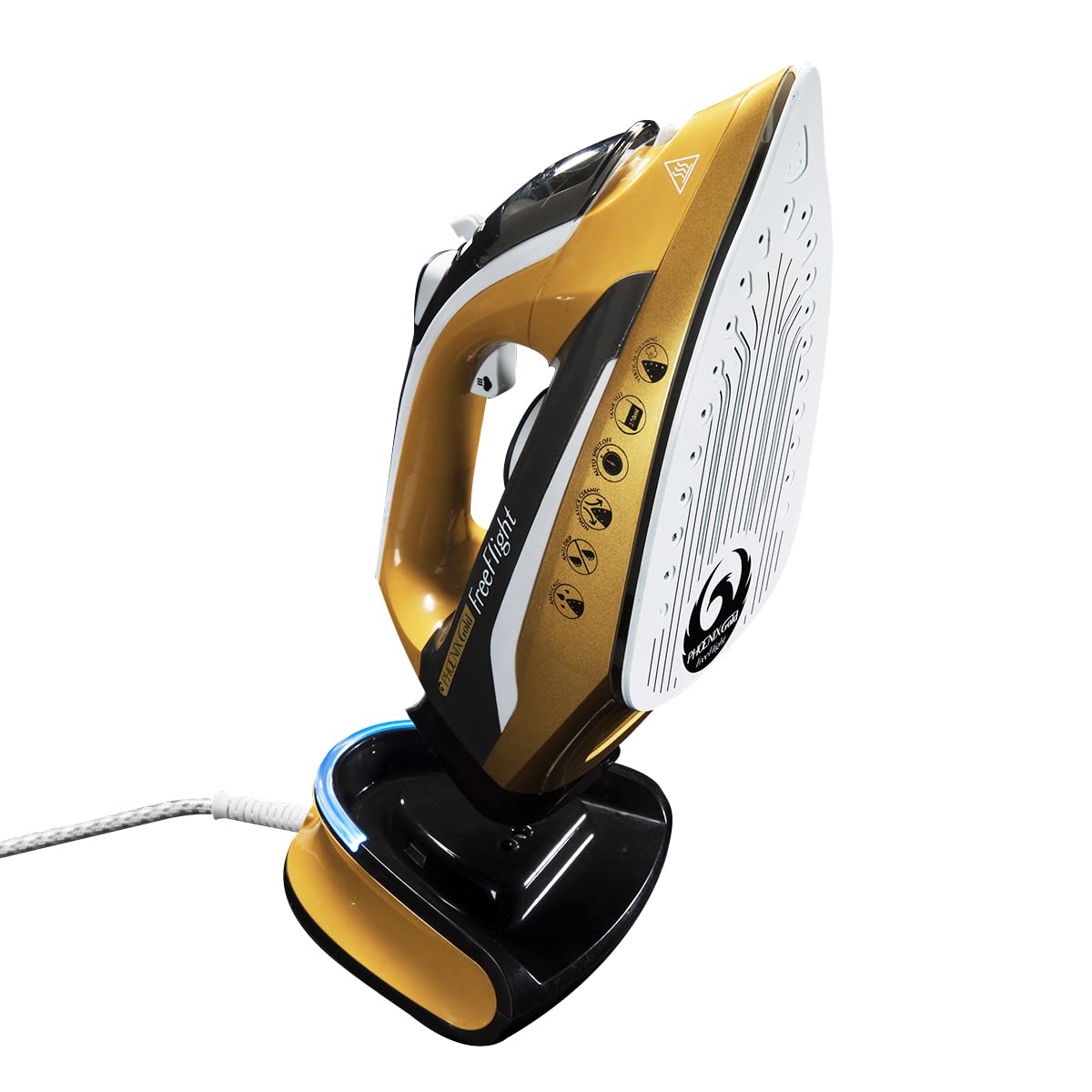 Fly Through Your Ironing with Freedom Discover the height of ironing flexibility with Phoenix Gold Freeflight by JML, a cord-free marvel that brings the power of a steam iron generator to your fingertips. Glide through wrinkles with a ceramic soleplate that distributes heat evenly, whilst its potent 2400W output tackles even the most stubborn of creases. Embrace the convenience of a corded experience with this corded steam iron, ready in just under 30 seconds, and get back to your busy life without missing a beat.