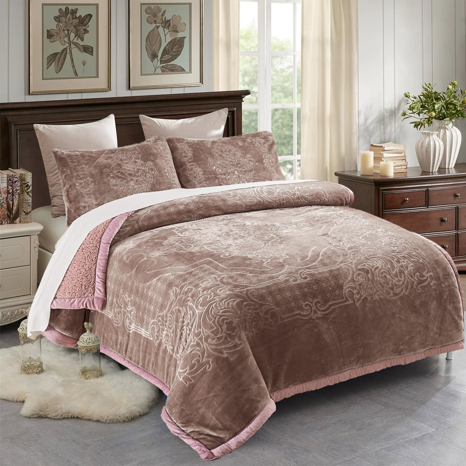 JML Heavy Sherpa Blanket 3 Piece - 3 Ply Korean Style Thick Bed Blanket with 2 Pillow Shams for Winter, Super Warm Blanket for Bed, Solid Woodrose, 79"x91"