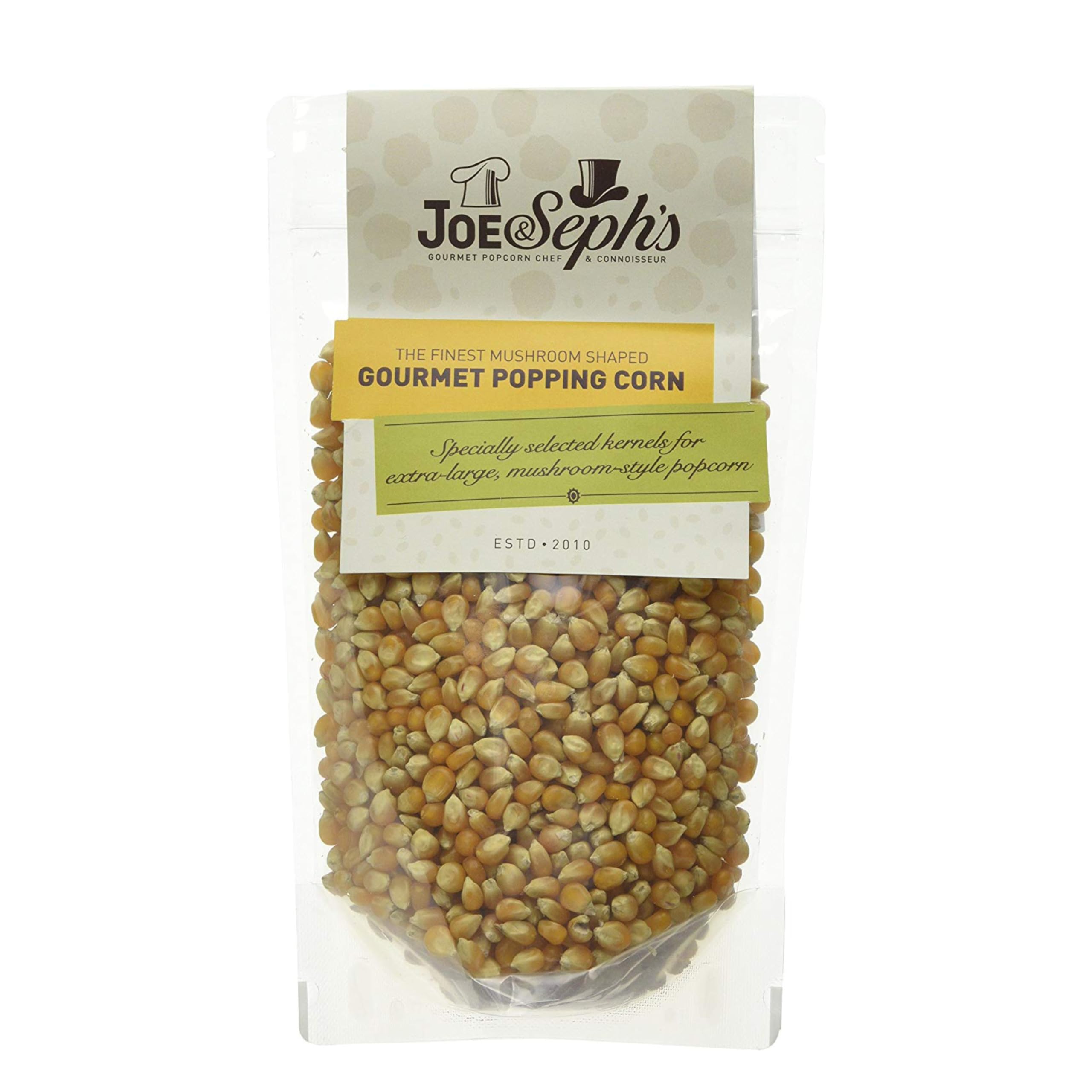 DescriptionProduct DescriptionJoe & Seph's mushroom shaped popping kernels are perfect for popping at home. Popping corn is suitable for any popcorn cooking method, including on the hob, in the microwave or with any popcorn maker machine. Mushroom kernels are larger than butterfly kernels and their increased surface area makes them ideal for picking up seasoning and flavour.IngredientsGMO Free CornDirectionsJoe & Seph's recommend air-popping your corn for the best resultsSafety WarningDo not eat raw. Some kernels may not pop, so remove these and enjoy with care! Packed in an environment that handles nuts, peanuts and sesame seeds.Manufacturer Contact Information1000 North Circular Road
