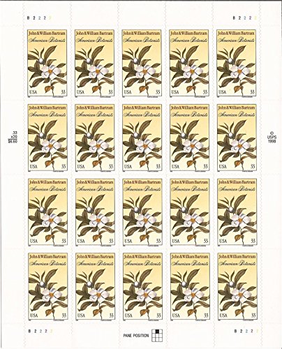 John and William Bartram: American Botanists, Full Sheet of 20 x 33-Cent Postage Stamps, USA 1999, Scott 3314