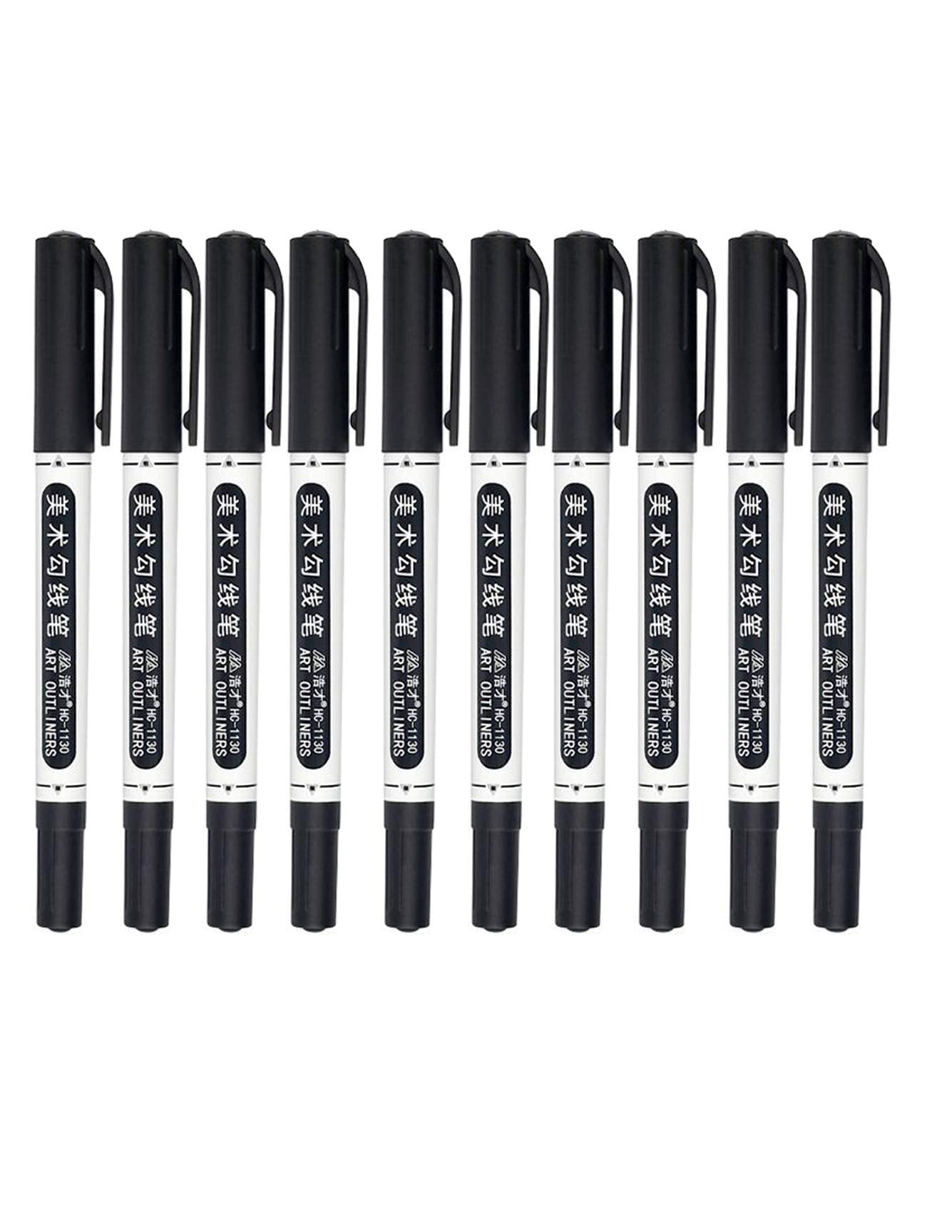 Jueshanzj Double-Ended Art Markers Set with 1mm Thick Tip and 0.5mm Fineliner Black 10 pens