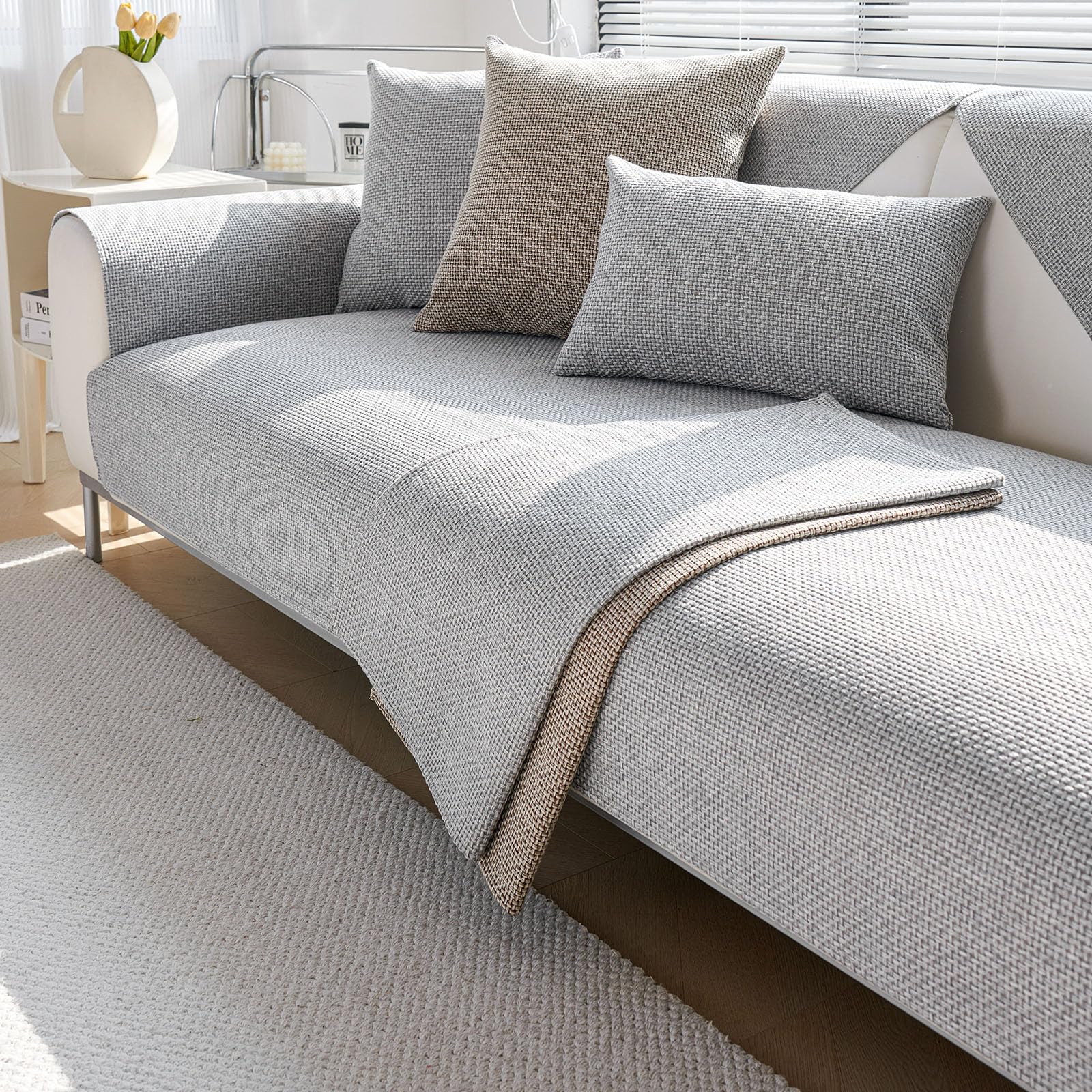 JUNLEBUYI Sofa Cover, Cotton Linen Couch Covers, Universal Sofa Covers 2 Seater / 4 3 1 Seater, L Shape Sofa Cover, Non Slip Sofa Cover, Sofa Slipcovers for Sofa Protector (110×160cm,Light Gray)