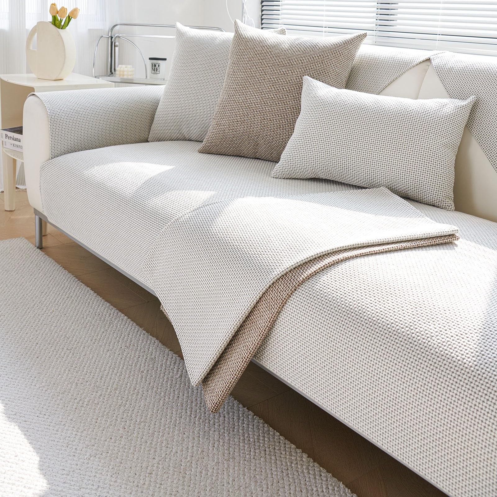 JUNLEBUYI Sofa Cover, Cotton Linen Couch Covers, Universal Sofa Covers 2 Seater / 4 3 1 Seater, L Shape Sofa Cover, Non Slip Sofa Cover, Sofa Slipcovers for Sofa Protector (90×70cm,Off-white)