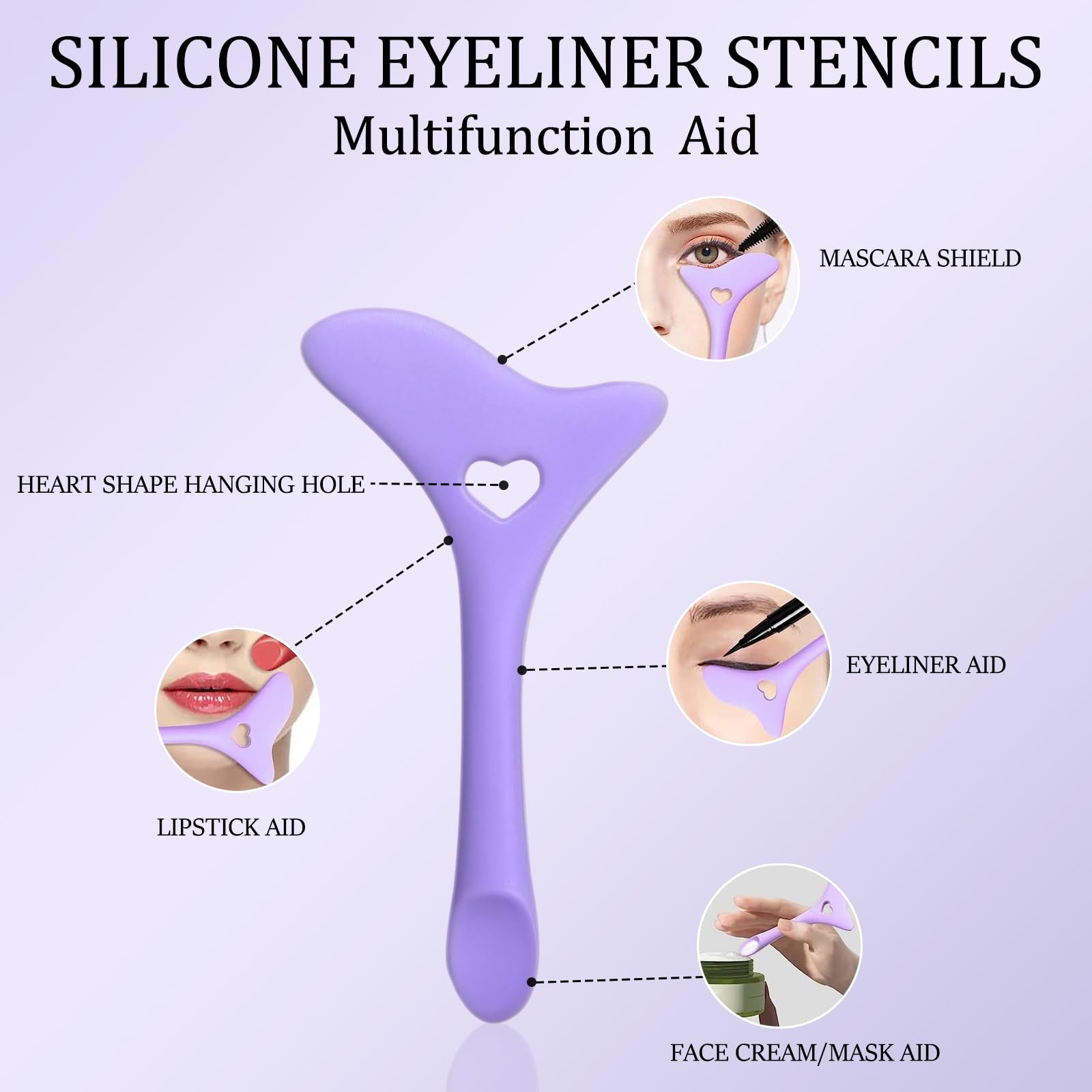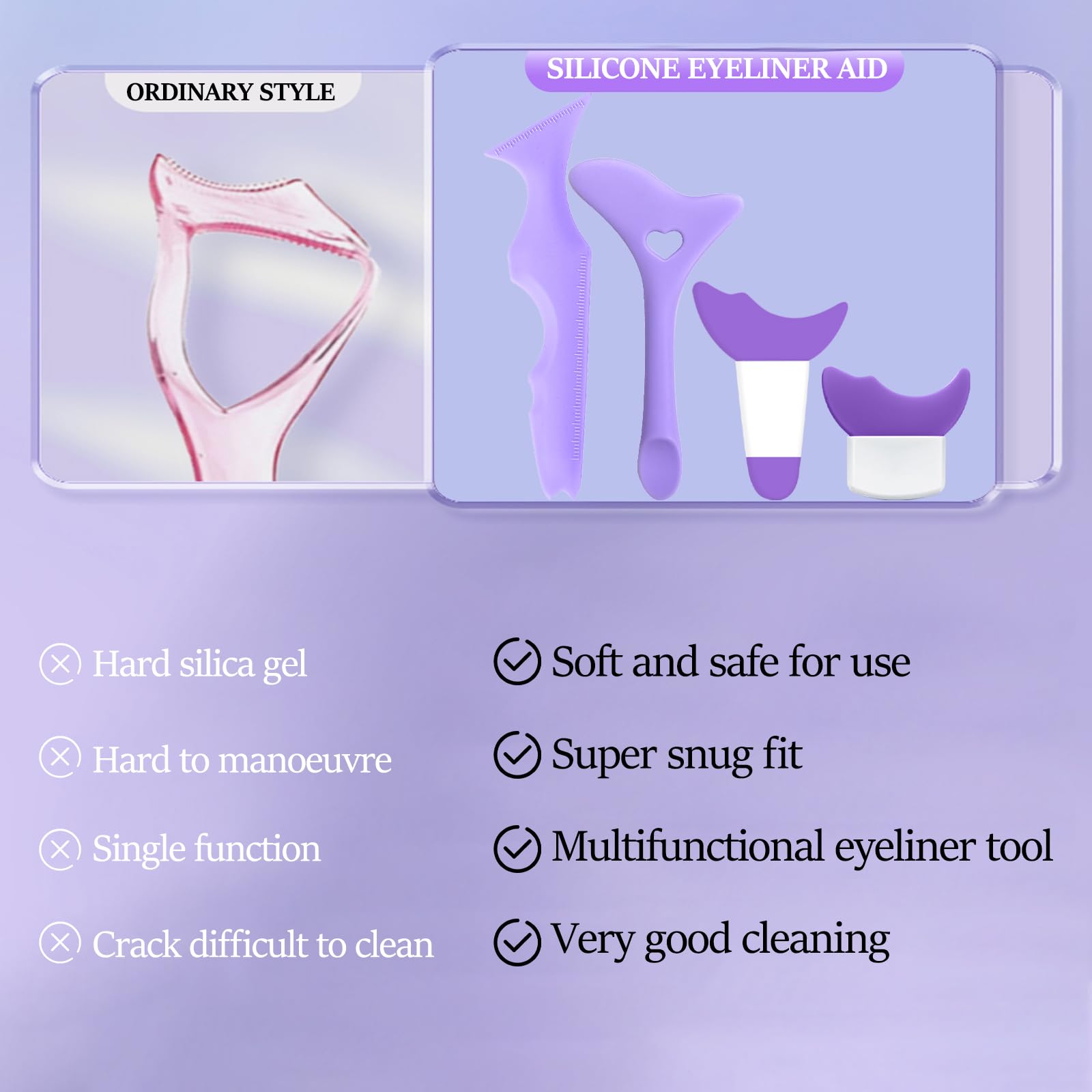 Jutqut 4Pcs Eyeliner Stencils Kit for Women - Reusable Silicone Eye Aid Makeup Tool for Perfect Winged Liner Cat Eyes Eyeshadow & Lipstick Application Ideal for Beginners & Professionals