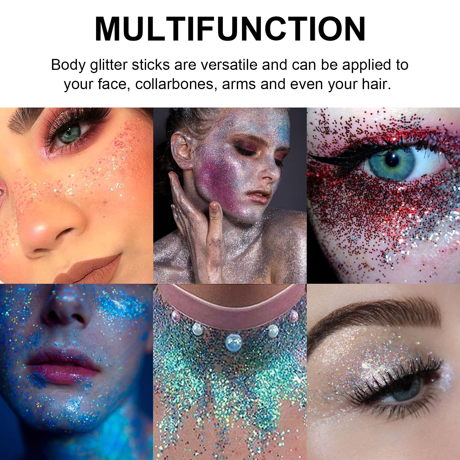 Jutqut Body Glitter Stick, Chunky Glitter Gel for Face Body Hair, Purple Glitter Face Glitter Gel Makeup, Sparkling Holographic Mermaid Sequins Paint, Waterproof Multiuse Glitter Face Paint, 08#Purple