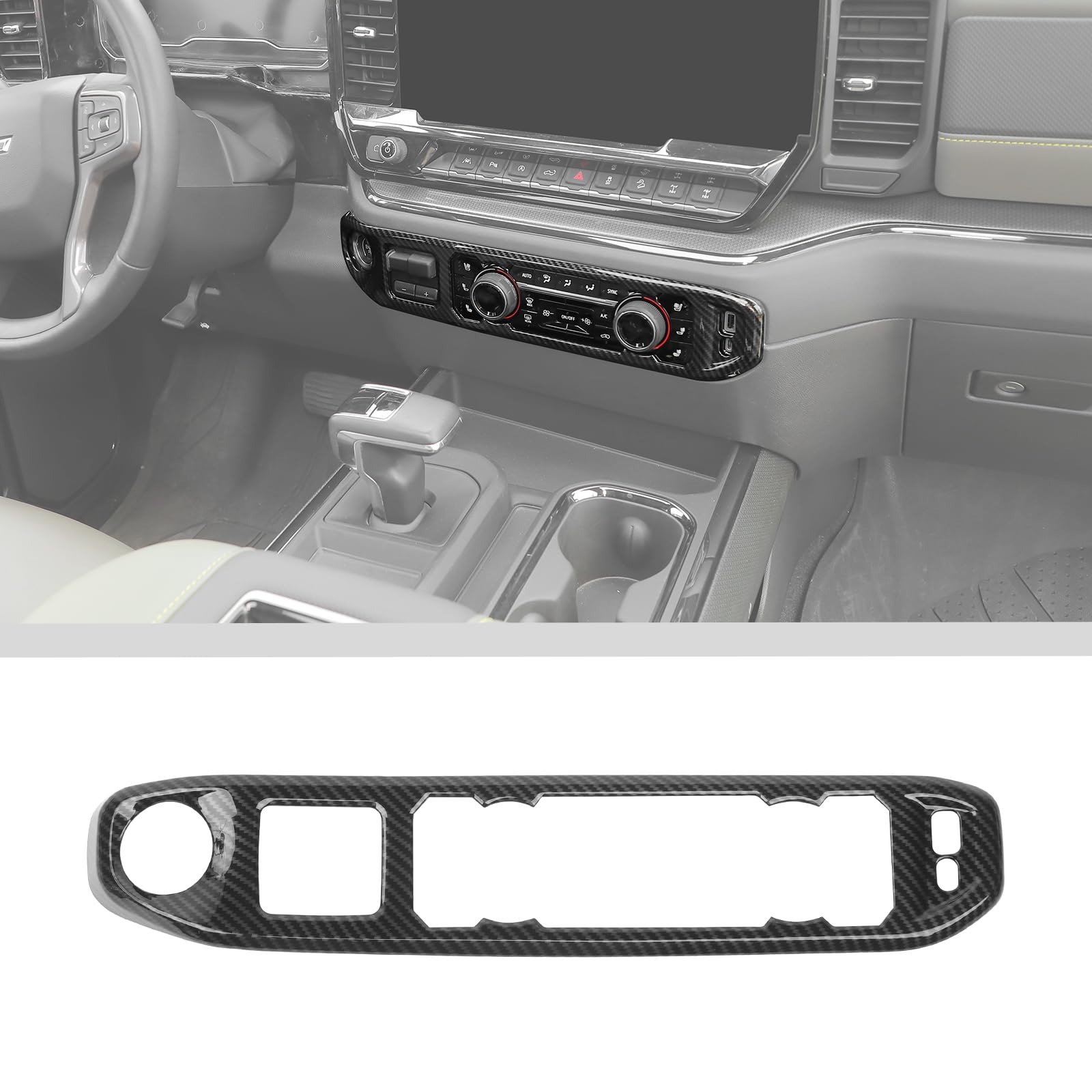 JWWY Air Conditioning HVAC Temperature Climate Control Panel Dashboard Ornament Cover Trim Fit for 2022-2024+Chevy Silverado GMC Sierra Interior Accessories Carbon Fiber ABS