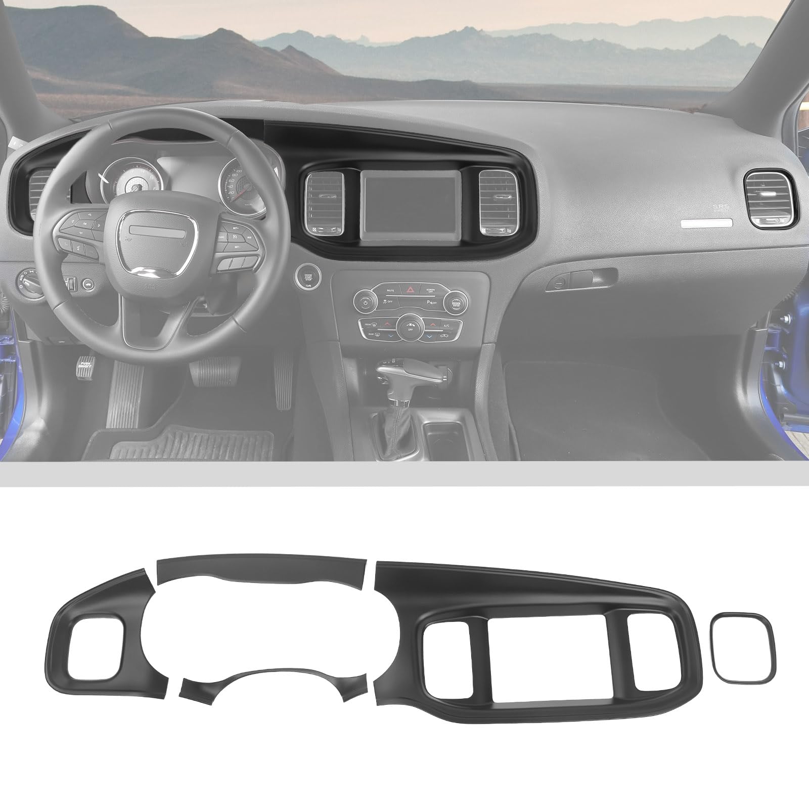 JWWY for Charger Center Consoles Dash Board Dashboard Instrument Gauge Cluster Dash Fascia Trim Panel Garnish Bezel for 2015-2024+ Dodge Charger Interior Accessories, ABS Matte Black 5pcs