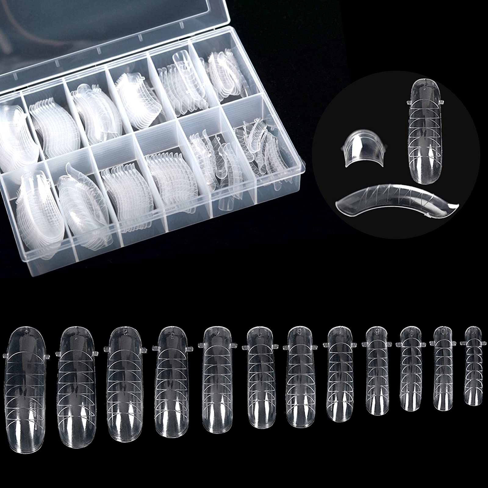 KADS 120PCS Clear Full Cover Dual Nail System Form UV Gel Acrylic Nail Art Mold Artificial Nail Tips with Scale for Extension (MODEL 4)