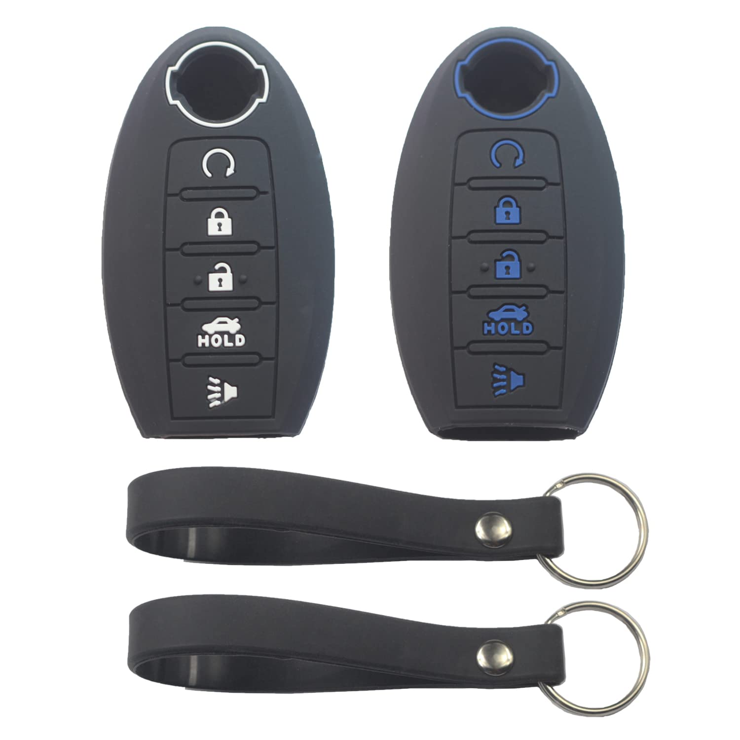 Kcpros 2Pcs 5 Buttons Key Fob Cover Compatible with Nissan, Black With White and Black With Blue, S