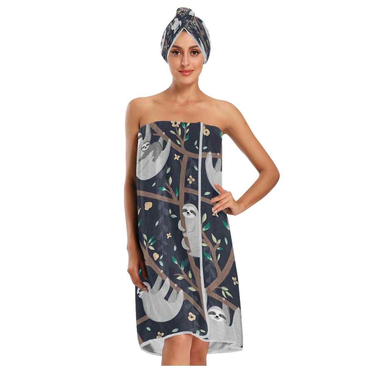 KEEPREAL Women's Spa Towel Wrap Set of 3, Cute Sloths Bathrobe Shower Bath Body Wrap with Adjustable Closure