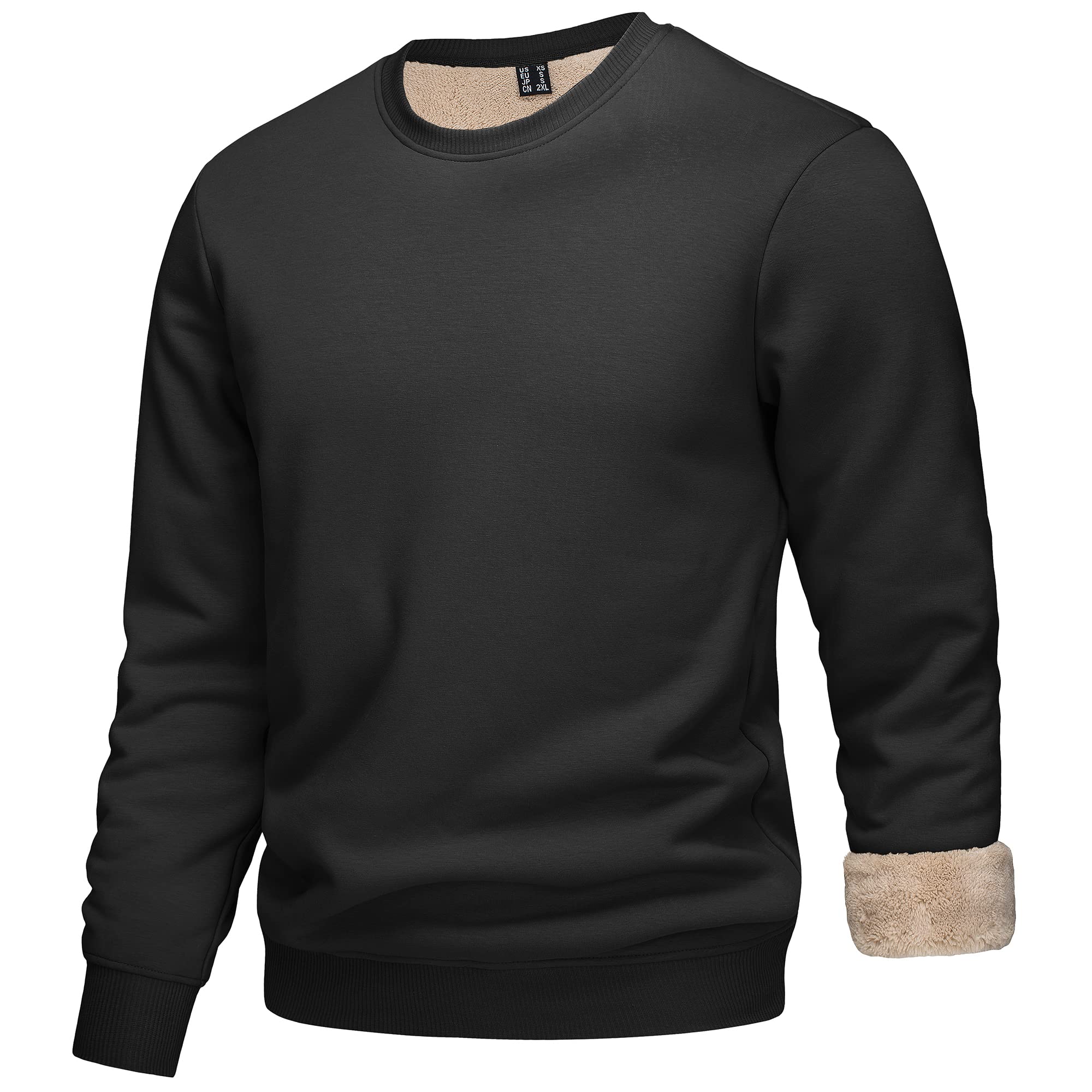 KEFITEVD Mens Sherpa Lined Sweatshirt Winter Warm Sweater Casual Fleece Jumper Crew Neck Pullover Sweatshirt,Black,M