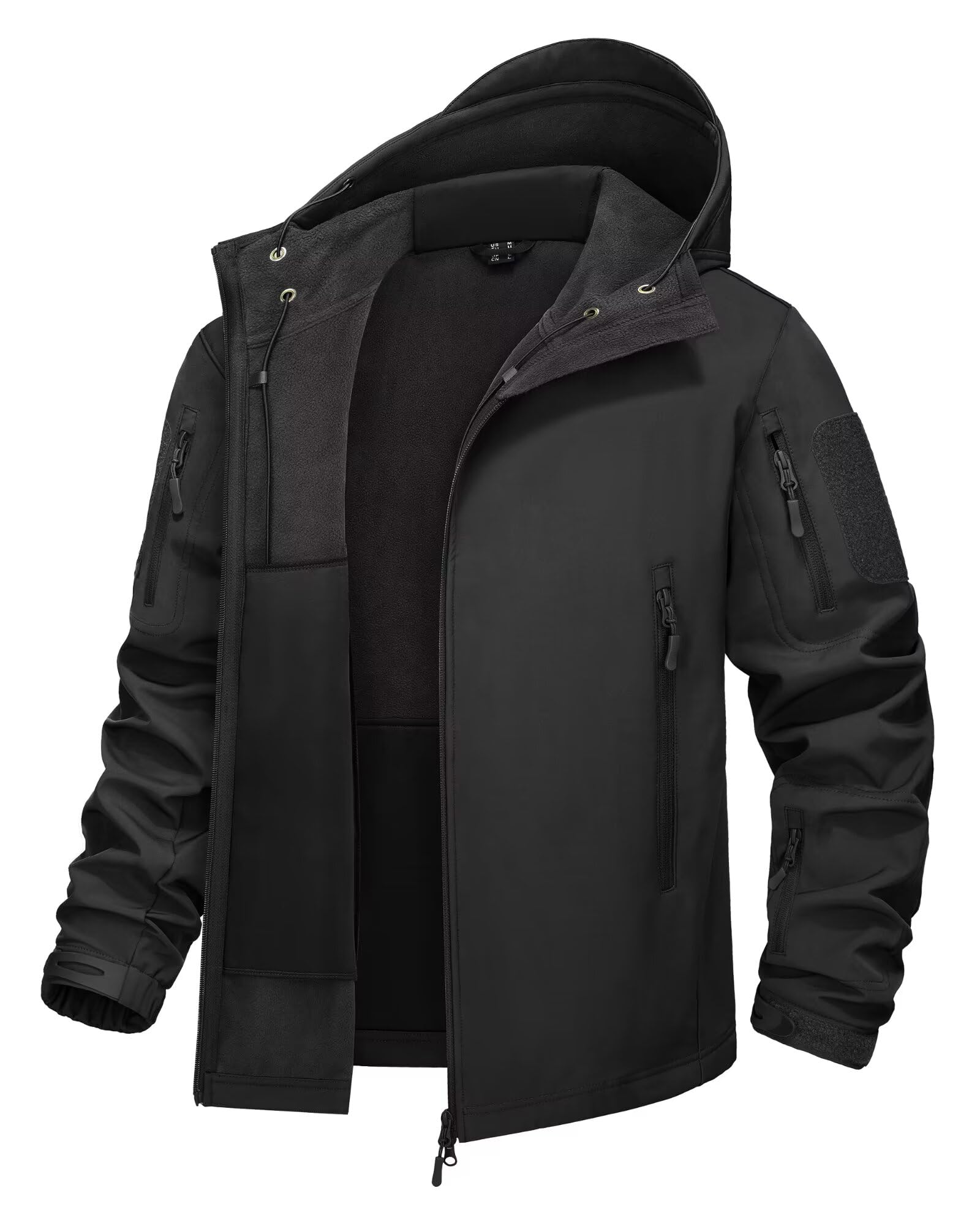 KEFITEVD Mens Tactical Softshell Jacket Fleece Lining Hunting Jackets Windbreaker Coat, Black, L