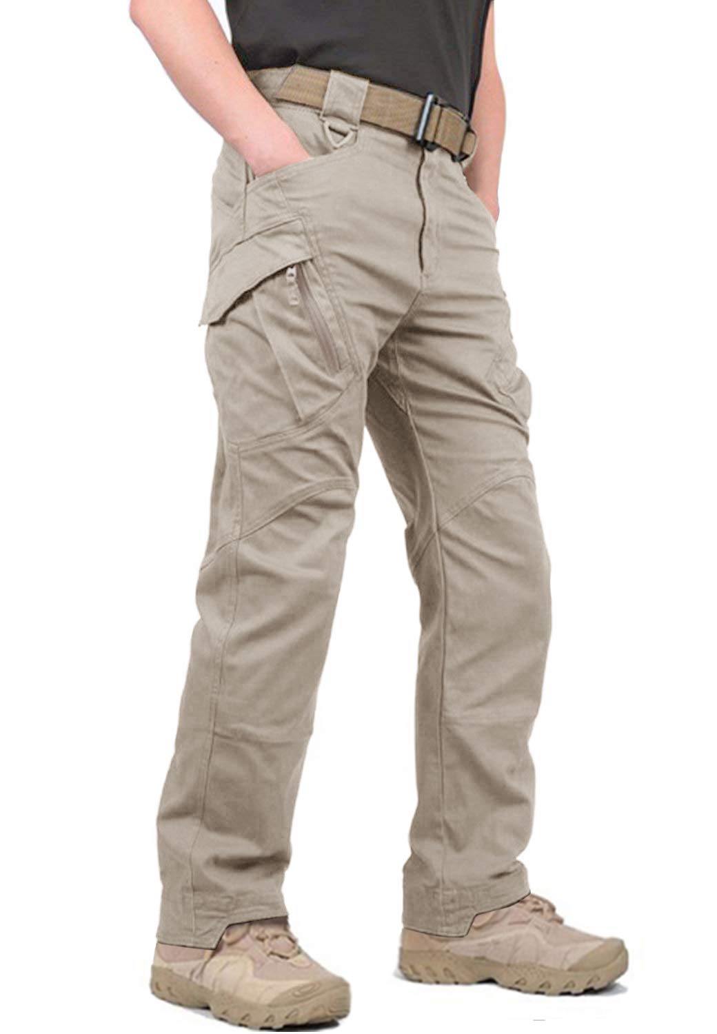 KEFITEVD Mens Tactical Cargo Trousers Outdoor Ripstop Army Pants Climbing Combat Trouser, Khaki, 34