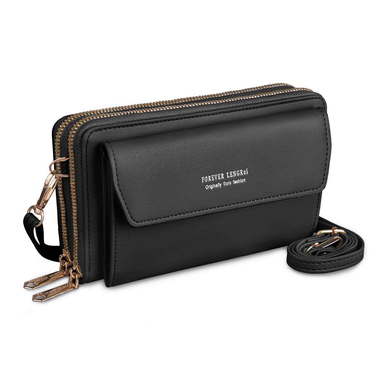 The cellphone purse shoulder bag is made of artificial leather, with a good touch and studry double zipper opening and closing.