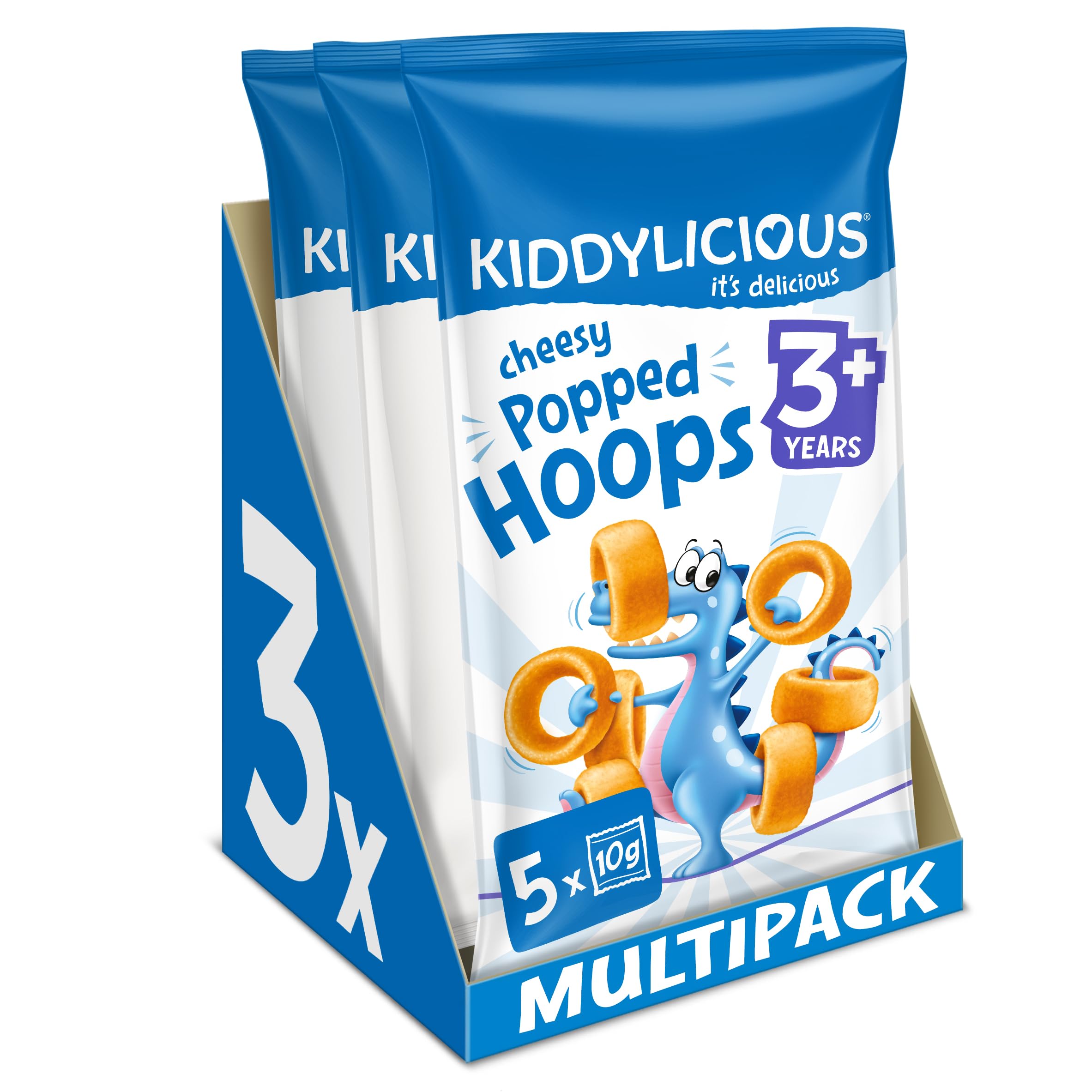DescriptionProduct DescriptionPerfect for munching from little fingers, our playful Popped Hoops are air popped to the perfect crunch and are a source of protein. Our Popped Hoops are not just tasty, but they are packed with veggies and suitable for coeliacs and vegetarians. Suitable from 3 years and available in two yummy flavours.IngredientsINGREDIENTS Pooped hoops (lentil four (8%), rice flour (22%), potato starch, salt, emulsifier: mono and di-glycerides (to hold our little hoops together)). cheese flavour (8%) (rice flour, onion powder, yeast extract powder, natural flavour, cheese powder (MILK), colour: paprika extrac), high oleic sunflower oilDirectionsPop a pack in your bag for a quick and easy snack wherever you areManufacturer Contact InformationKiddylicious, PO Box 926, Amersham, HP6 9JL