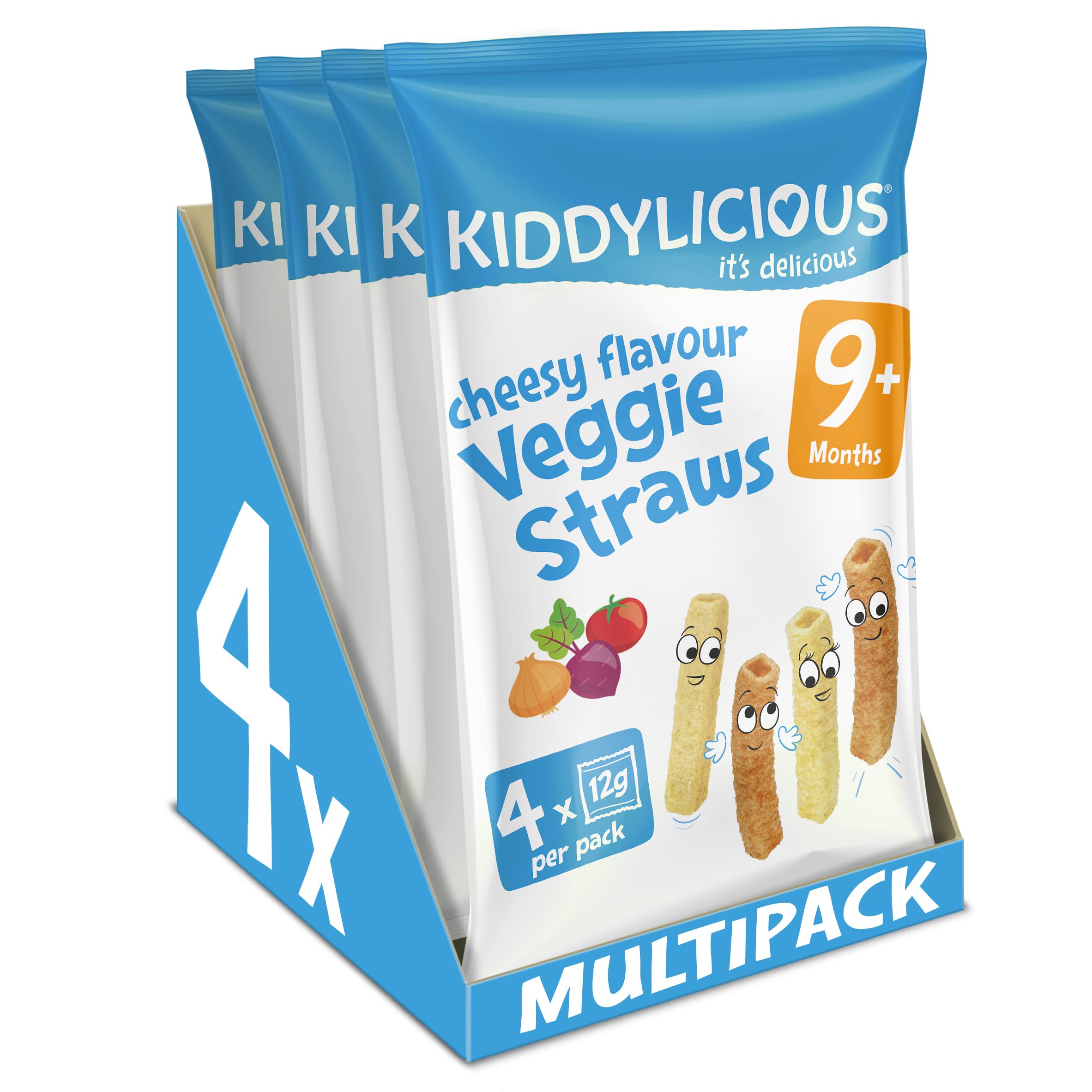 DescriptionProduct DescriptionWith their hollow middle and fun tube shapes, Kiddylicious Cheesy Veggie Straws are the perfect shape and texture for developing mouths and are suitable for babies from 9 months. Encourage independent eating, better hand to mouth coordination and jaw muscle development with these tasty kids snacks.IngredientsPotato starch (30%), rapeseed oil, rice flour (19%), yellow pea flour (18%), cheese flavour seasoning (rice flour, natural flavouring, onion powder (0.5%), yeast extract powder), tomato powder (0.5%), salt, beetroot powder (0.2%)DirectionsStore in a cool, dry place.Safety WarningKIDDY CARE: Kiddylicious Veggie Straws are specifically developed for children from 9 months. Always supervise young children whilst they're enjoying them.Manufacturer Contact InformationThe Kids Food Co., Kiddy HQ, 152 Station Road, Amersham, Buckinghamshire, HP6 5DW, UK