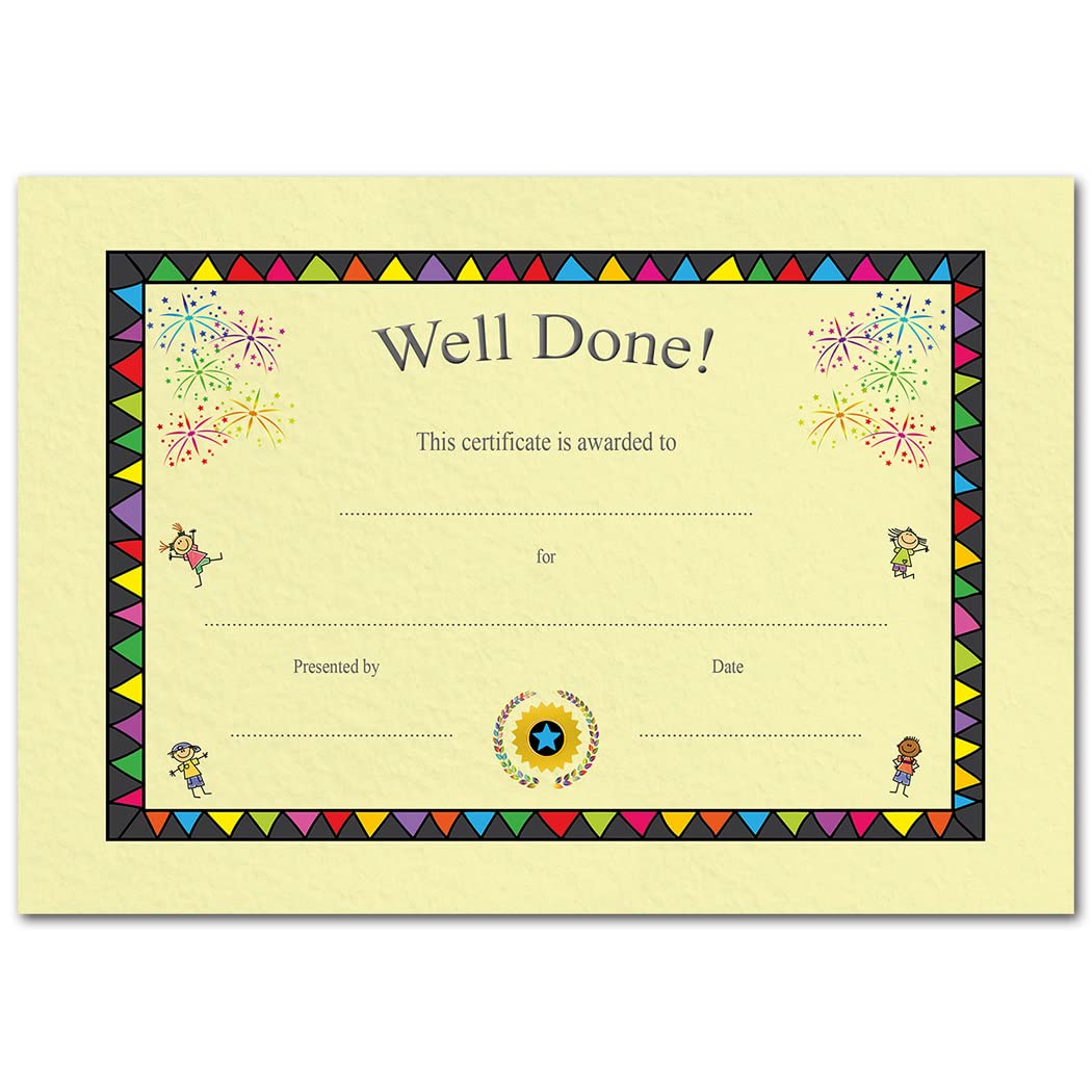 This quality Pack of 25 Well Done Certificates feature a colourful design with a quick and easy, blank fill-in award section included in the design that will delight children of different ages. An ideal kid’s certificate for younger school children or for youngster’s clubs such as Cub Scouts, Sport clubs, Beavers and Brownies. This unusual 25 pack of Well Done Certificate is produced by Fine Art Cards, trademark Felicitas and made in the UK. The cute graphics are reproduced using modern printing techniques on good quality sturdy paper to give our customers real value for money. The greeting cards, games, quizzes and certificates produced Felicitas are Eco-Friendly and can be easily recycled which is the reason we don’t use foil, glitter, ribbon, or plastic-based gloss laminates on our cards. A perfect Pack of 25 Well Done Certificates that is sure to bring smiles of delight to deserving kids and their proud parents and families.