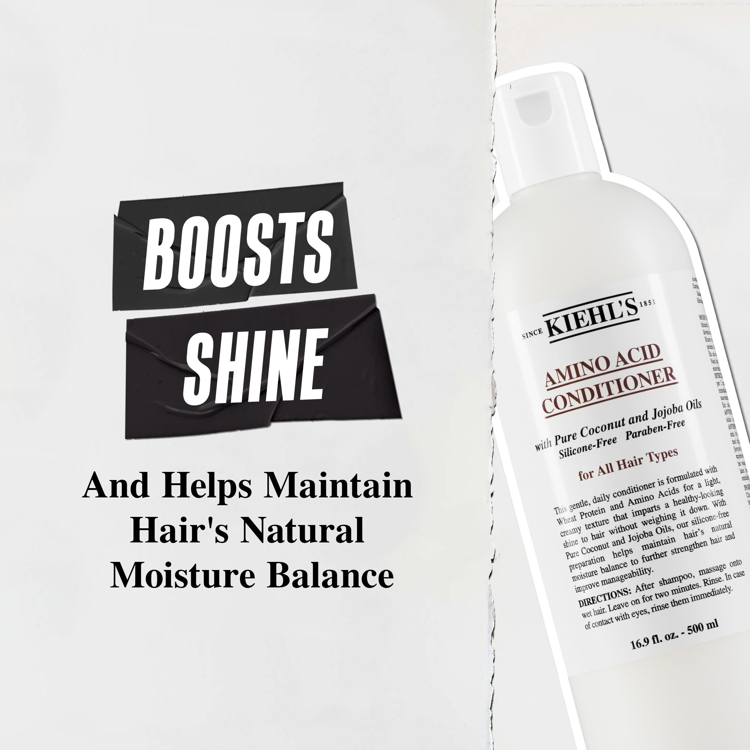 Amino Acid Conditioner An exotic, silicone-free daily conditioner for all hair types Gentle, daily silicone-free conditioner Formulated with wheat proteins and amino acids for a light, creamy texture Imparts a healthy-looking shine to hair without weighing it down Helps maintain hair’s natural moisture balance to further strengthen hair and improve manageability How to Apply: After shampooing with the Kiehl's Shampoo appropriate for your hair and scalp type, rinse hair thoroughly Apply Amino Acid Conditioner by gently working it into the scalp and hair-especially the ends and combing through Leave in for a few minutes and then rinse out KEY INGREDIENTS Amino Acids When chemically united with fatty alcohol or fatty acid, Amino Acids have cleansing properties. Within our formulas, they are known to help retain moisture. Coconut Oil Coconut Oil is derived from the Coconut Tree, known as the “tree of life.” Used in Ayurvedic medicine for over 4,000 years, Coconut Oil is rich in fatty acids and known to nourish, hydrate and soften. Jojoba Butter Extracted from the seeds of the desert shrub, Simondsia Chinensis, Jojoba Butter is refined from the oil that has been traditionally used for skin care by both Mexicans and Native Americans. Within our formulas, it is known to nurture and soften skin.