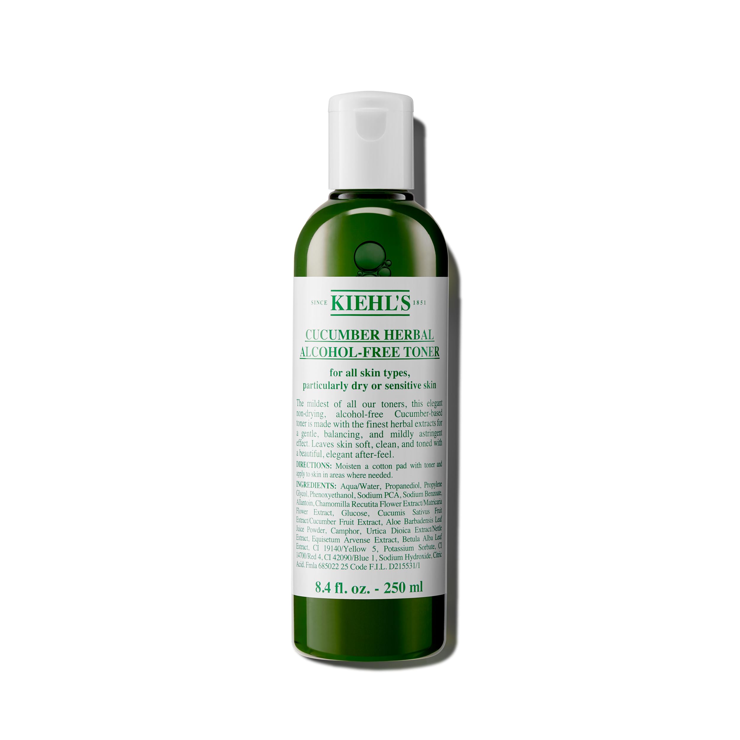 Kiehl's Cucumber Herbal Alcohol-Free Toner is a mild, alcohol-free facial toner for dry skin and sensitive skin. Made with the finest herbal extracts, our alcohol-free facial toner gently balances and tones skin. Infused with Cucumber Extract, this formula is the mildest of our facial toners. Paraben-free and fragrance-free with a mild astringent effect. Non-drying formula leaves skin soft, clean and toned with an elegant feel. Alcohol-free. For all skin types, particularly dry or sensitive skin.