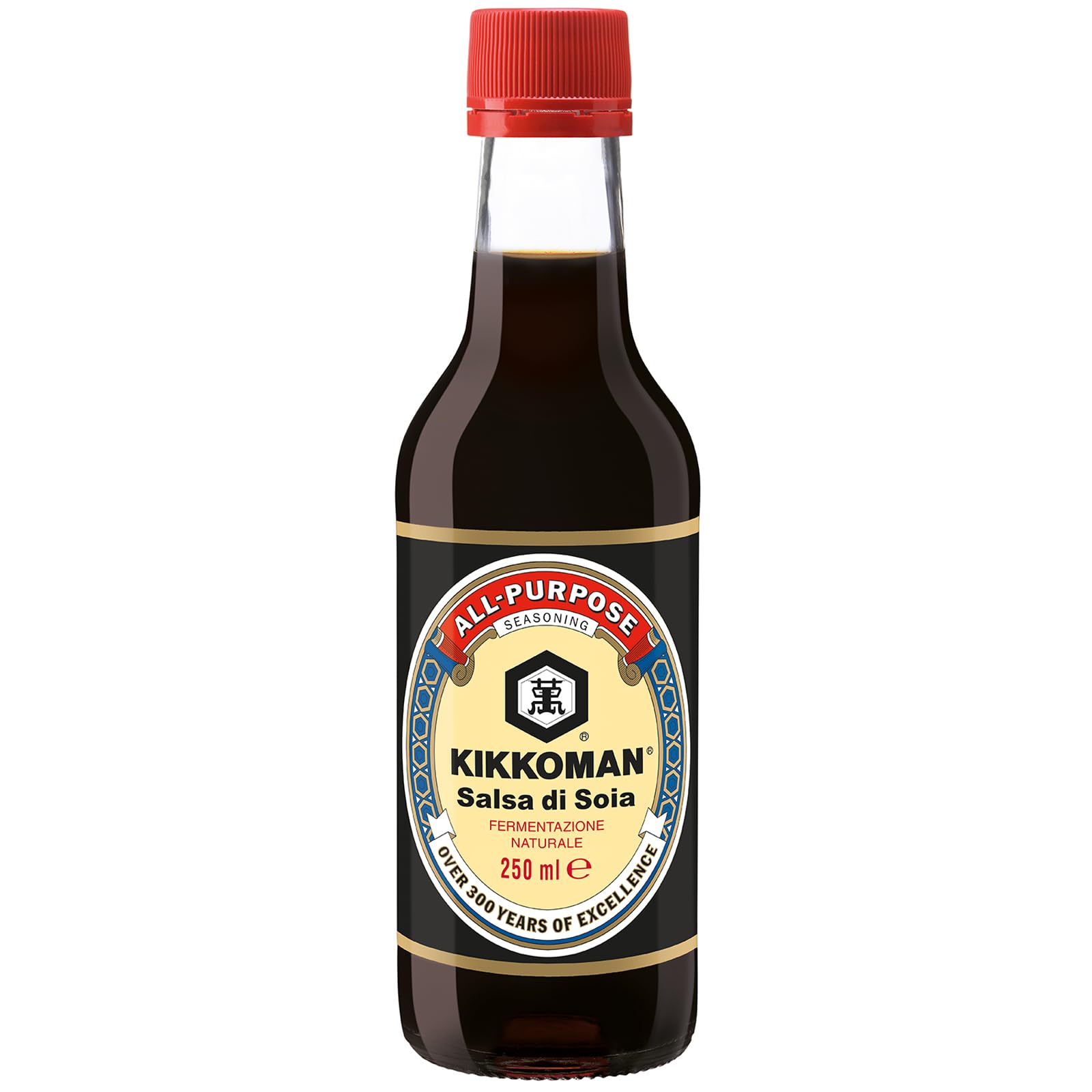 DescriptionProduct DescriptionKikkoman All-Purpose Naturally Brewed Soy Sauce is a reddish-brown aromatic seasoning can be used as a table-top condiment as well as a cooking ingredient. It is made from a high quality ingredients. It has an aromatic and distinctive flavour. The flavour has a subtle savoury hint to it and this makes it great for stir fries, salads or soups, and why not try and add it to your stews for an extra depth of delicious taste. Comes in 250 ml.IngredientsWater,Soybeans,Wheat,SaltDirectionsused for food seasoning..Box ContainsEach order comes with 1 x Kikkoman Dark Soy Sauce 250 mlManufacturer Contact InformationKikkoman Foods Europe B.V., The Netherlands. European distributor: Kikkoman Trading Europe GmbH, Theodorstrasse 293, 40472 D?sseldorf, Germany.