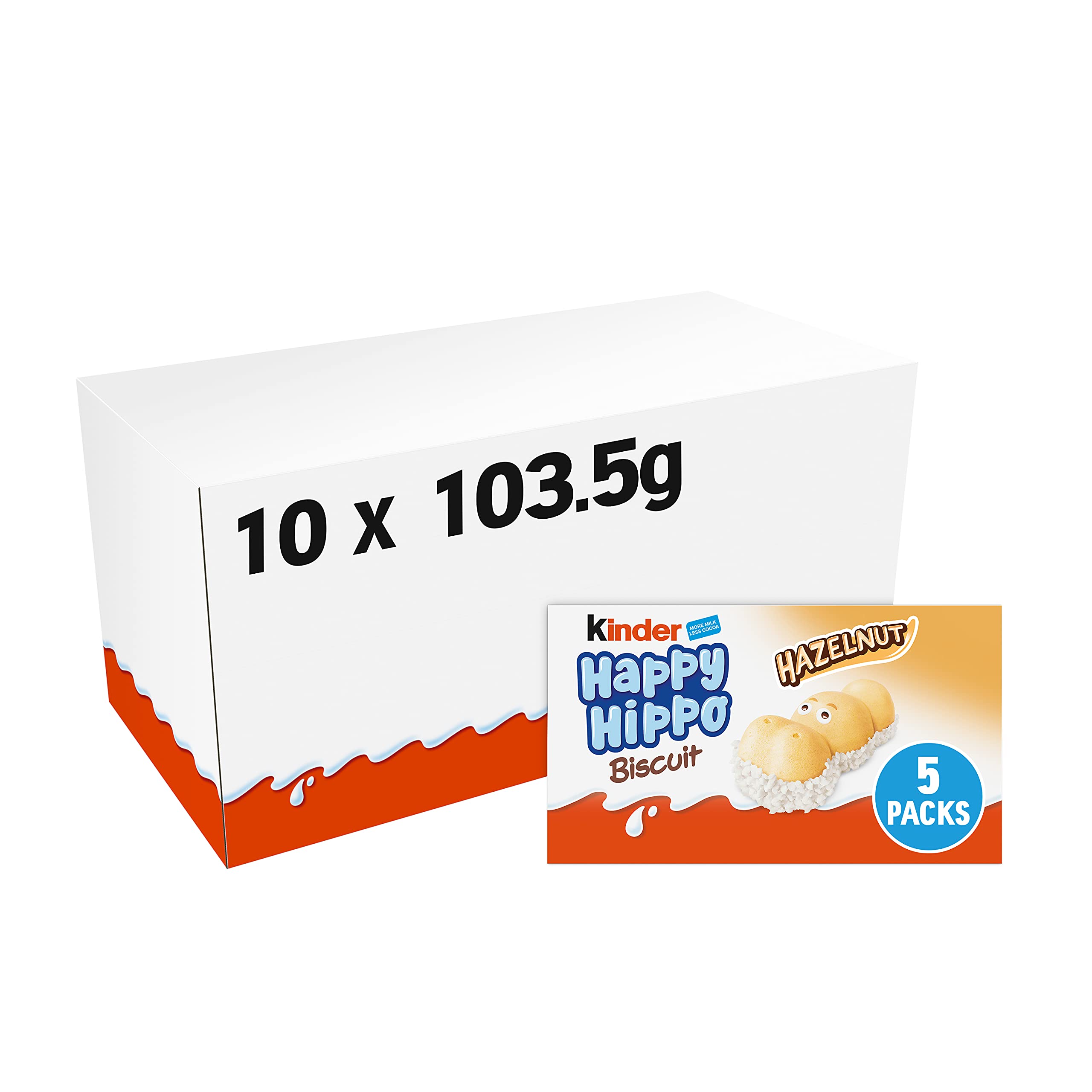 DescriptionProduct DescriptionKinder Happy Hippo is a crispy hippo shaped biscuit with a double milk and hazelnut cream filling.IngredientsSugar, vegetable fats (palm, shea), skimmed MILK powder (12.5%), HAZELNUTS (12%), WHEAT flour, MILK powder (7.5%), whey powder (MILK), WHEAT starch, emulsifier: lecithins (SOYA), sunflower oil, whey proteins (MILK), raising agents (sodium bicarbonate, ammonium bicarbonate), salt, vanillin, fat-reduced cocoa powder.Box ContainsEach order comes with 1 x Thorntons Vanilla Fudge Box 350 gManufacturer Contact Information(UK) Ferrero, 889 GREENFORD ROAD, GREENFORD, UB6 OHE, UK. (ROD FERRERO, KINSALE ROAD, CORK.