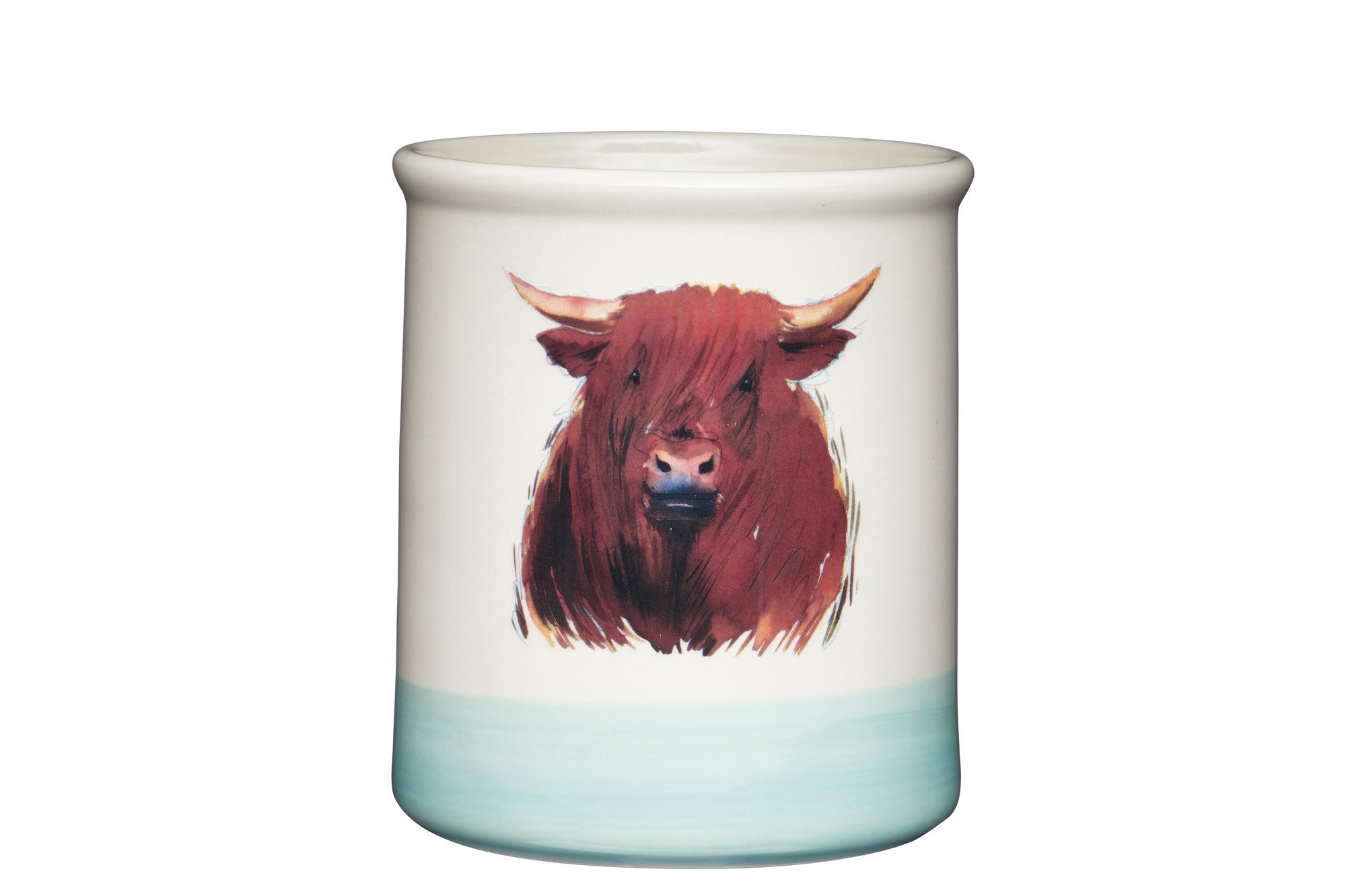 Product DescriptionThis hand-finished, beautiful utensils holder is just the ticket for a cluttered kitchen. Relax, knowing that hamish the Highland cow will keep your key kitchen tools within easy reach and ready for cooking your next family dinner.Set Contains:1 x Apple Farm Hand-Finished 'Hamish Highland Cow' Ceramic Utensil Holder