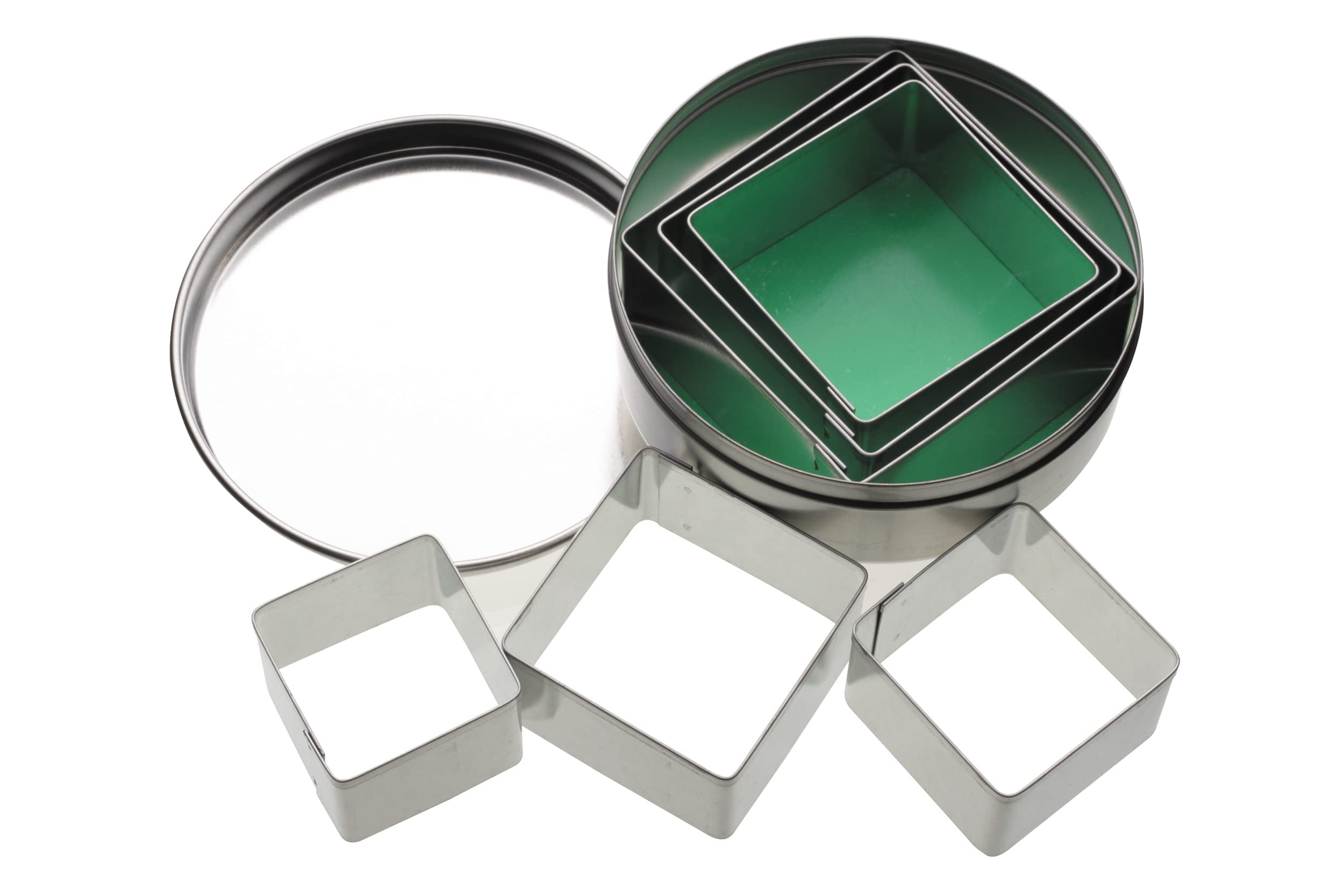 Product DescriptionYou can’t beat a bit of home baking. Making sweet treats and scrummy bakes is a great way to get creative in the kitchen, especially when you’re entertaining kids or preparing for a party. As they’re simple to make and delicious to eat, cookies are a brilliant way to get kids involved in the kitchen, and adding cookies into the mix will just add to the fun. That’s why these great-value square cookie cutters make such a fun addition to any baking set. And, thanks to their neat storage tin, they’ll be ready and waiting in the cupboard for you to call on whenever you need them. The cookie cutter set includes six assorted sizes, so they’re ideal for all sorts of occasions. Don’t stop at cookies, though. Use these metal cookie cutters to decorate sponges and cupcakes with fondant icing or marzipan, to cut little pastry pouches, or even to slice modelling clay.Set Contains:6 × Cookie Cutters 1 × Storage Tin