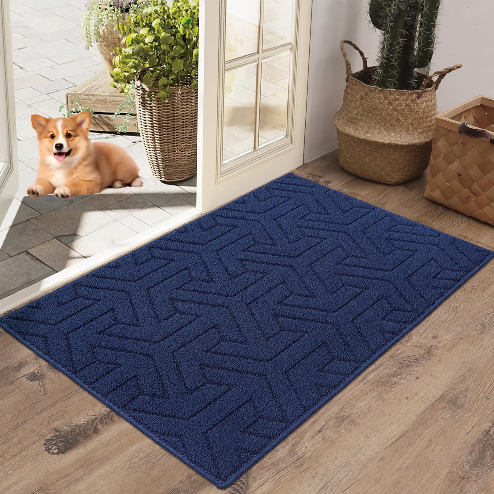 KMVIZI Doormat Indoor and Outdoor Floor Mat 60 x 90 cm Blue Kitchen Rug Washable Non-Slip Rug Runner Dirt Trapper Mat Carpet for Entrance, Kitchen, Patio, Hallway, Garden