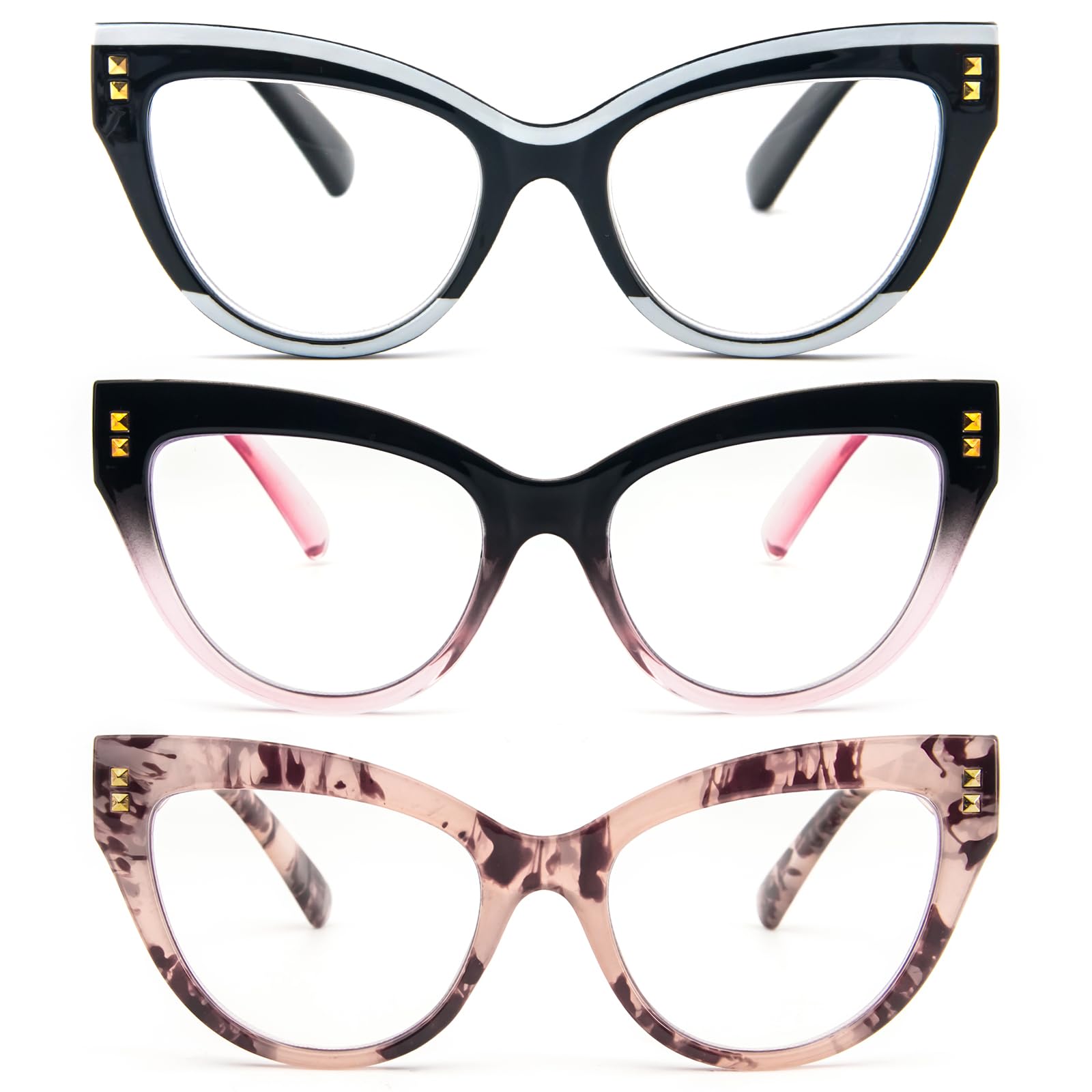 KoKoBin Cat Eye Reading Glasses Blue Light Blocking 3 pack Fashion Computer Glasses With Spring Hinge(Mix Colors,2.5)