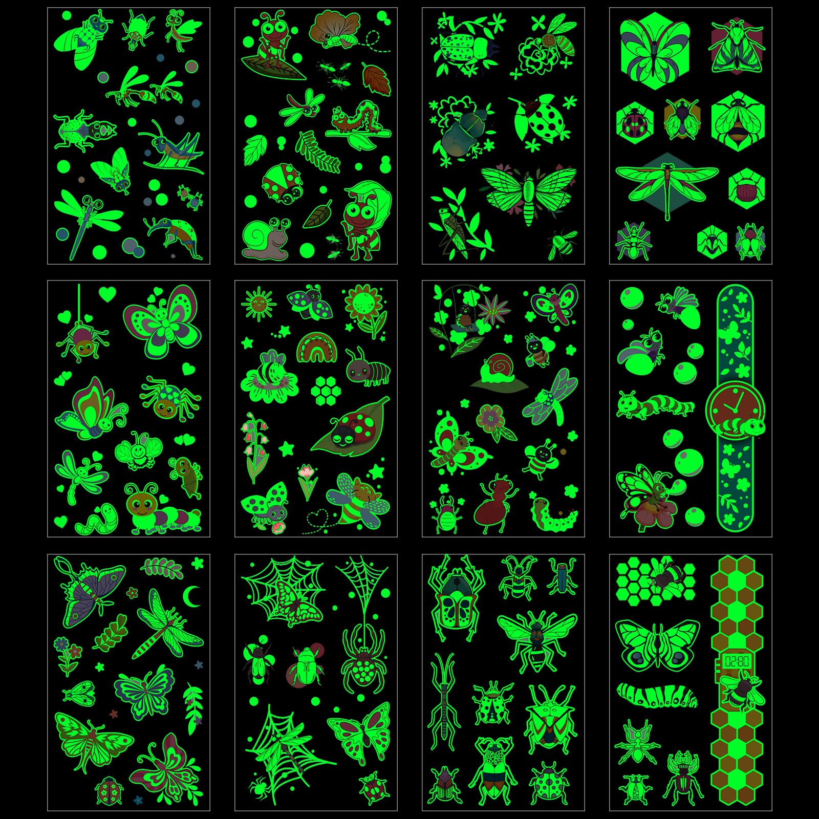 This glow in the dark bug tattoos set provides endless fun and open up a world of creativity. Here, these glow tattoos are delicately designed with all kinds of bugs shapes and colors, vivid and fun!