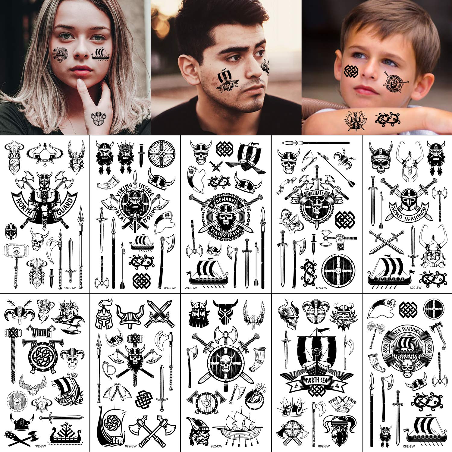 Konsait 130+ Tiny Pirate Temporary Tattoos, Black Viking Pirate Fake Tattoos Body Art Stickers for Girls Boys Kids Party Bag Filler Children's Birthday Gift Pirate Party Supplies Favors Face Hand Arm