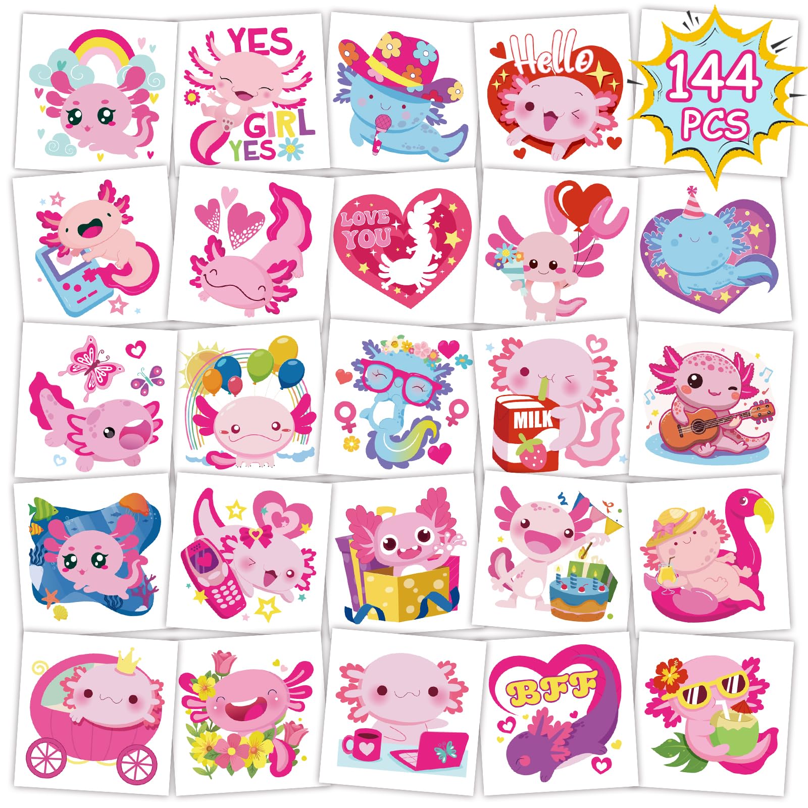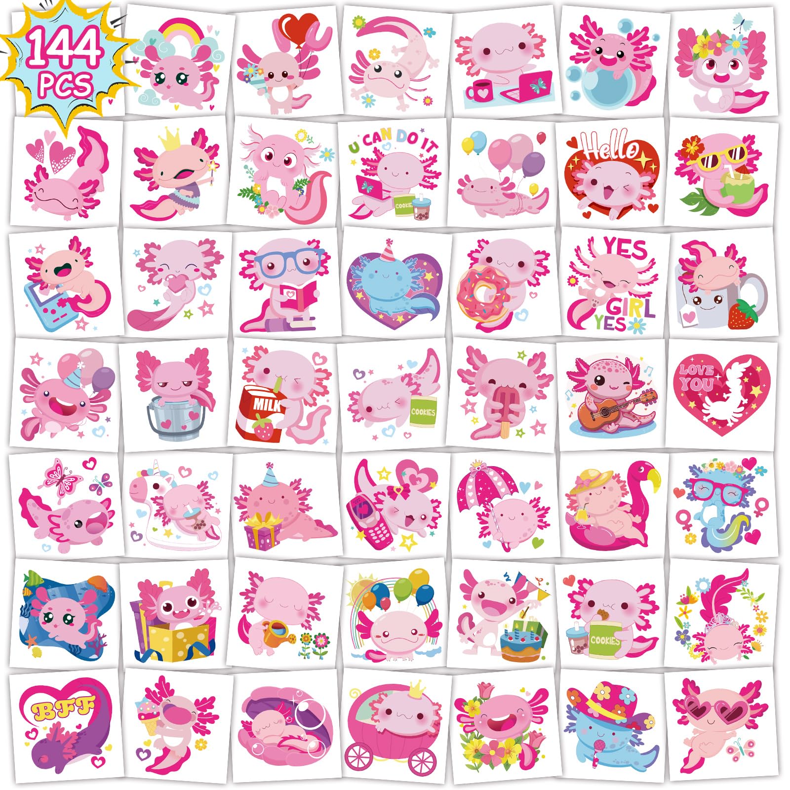 144PCS axolotl tattoos