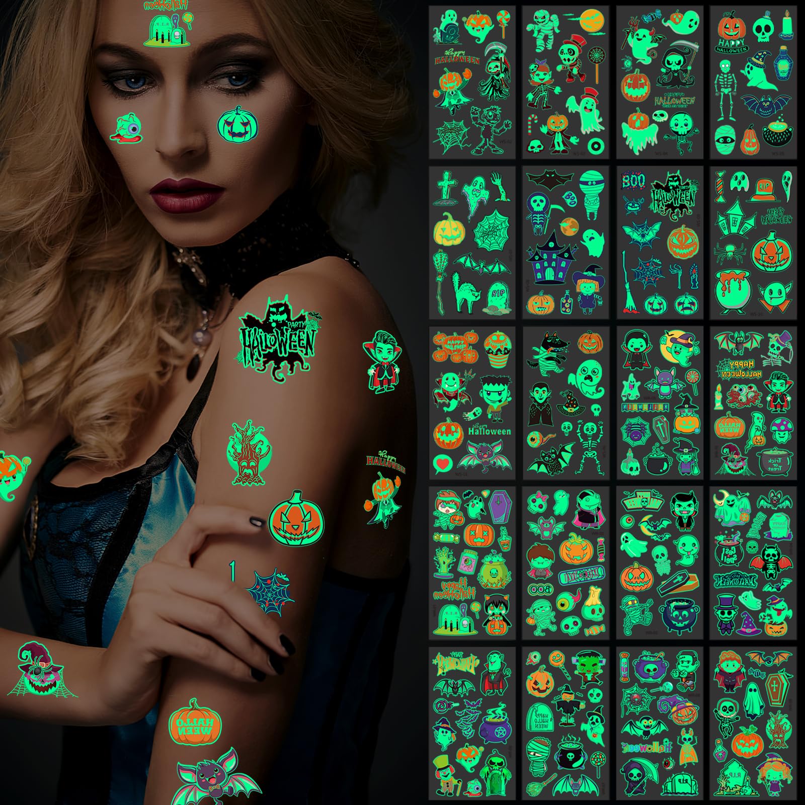 The Glow in the Dark Halloween Tattoos set is a great Halloween party supplies and Halloweenparty favors in any occasions, Halloween Cosplay Parties, Halloween stuffers, Halloween makeup, Ghost decorations, Vampire Party Supplies, Zambie Decor, Haunted House,Pumpkin Party Favors, Halloween party games for kids and more events.