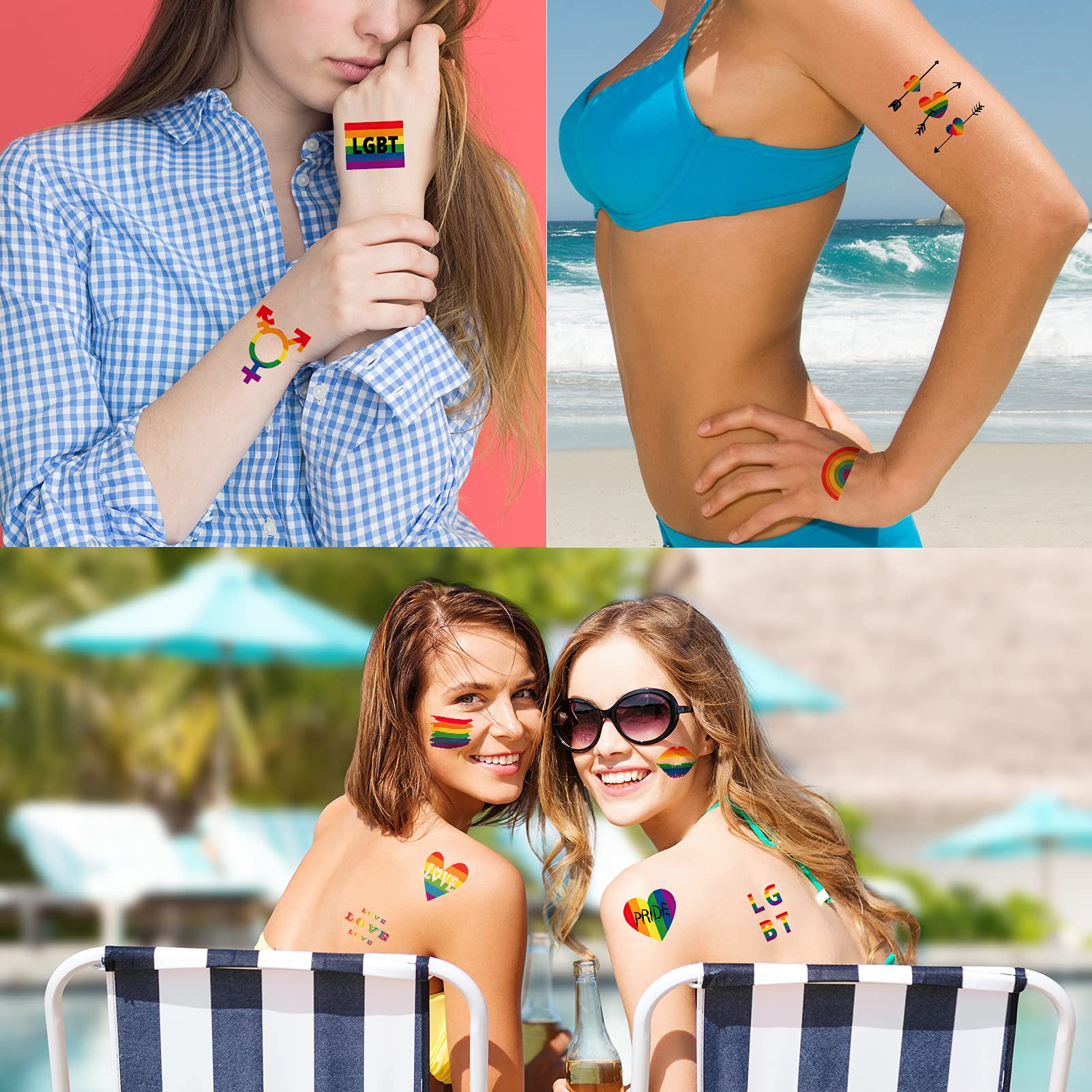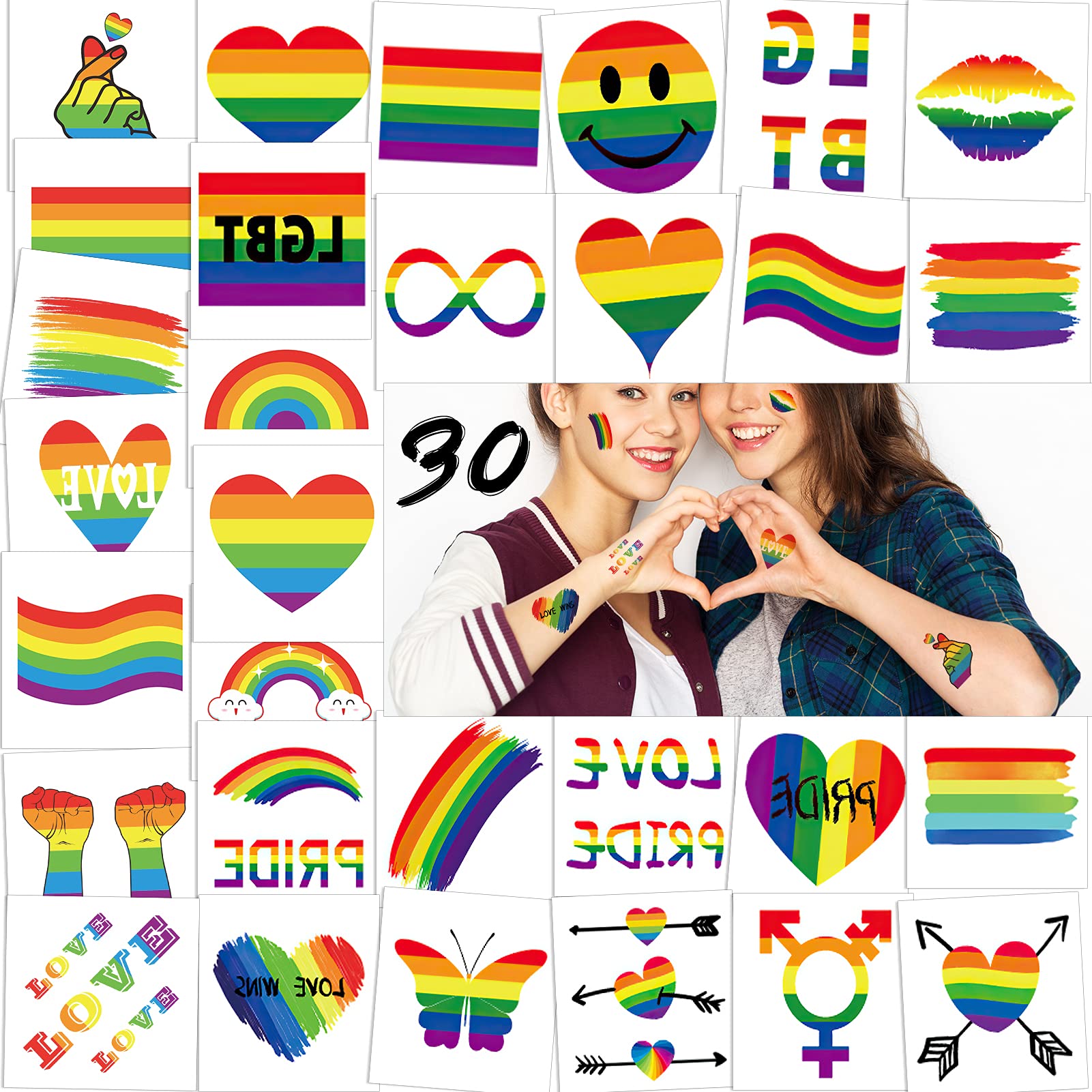 Konsait 30 Sheets Rainbow Temporary Tattoos, Rainbow Flag Heart Tattoos Waterproof Body Art Sticker for Girls Boys Party Favors Pride Equality Parades Celebrations